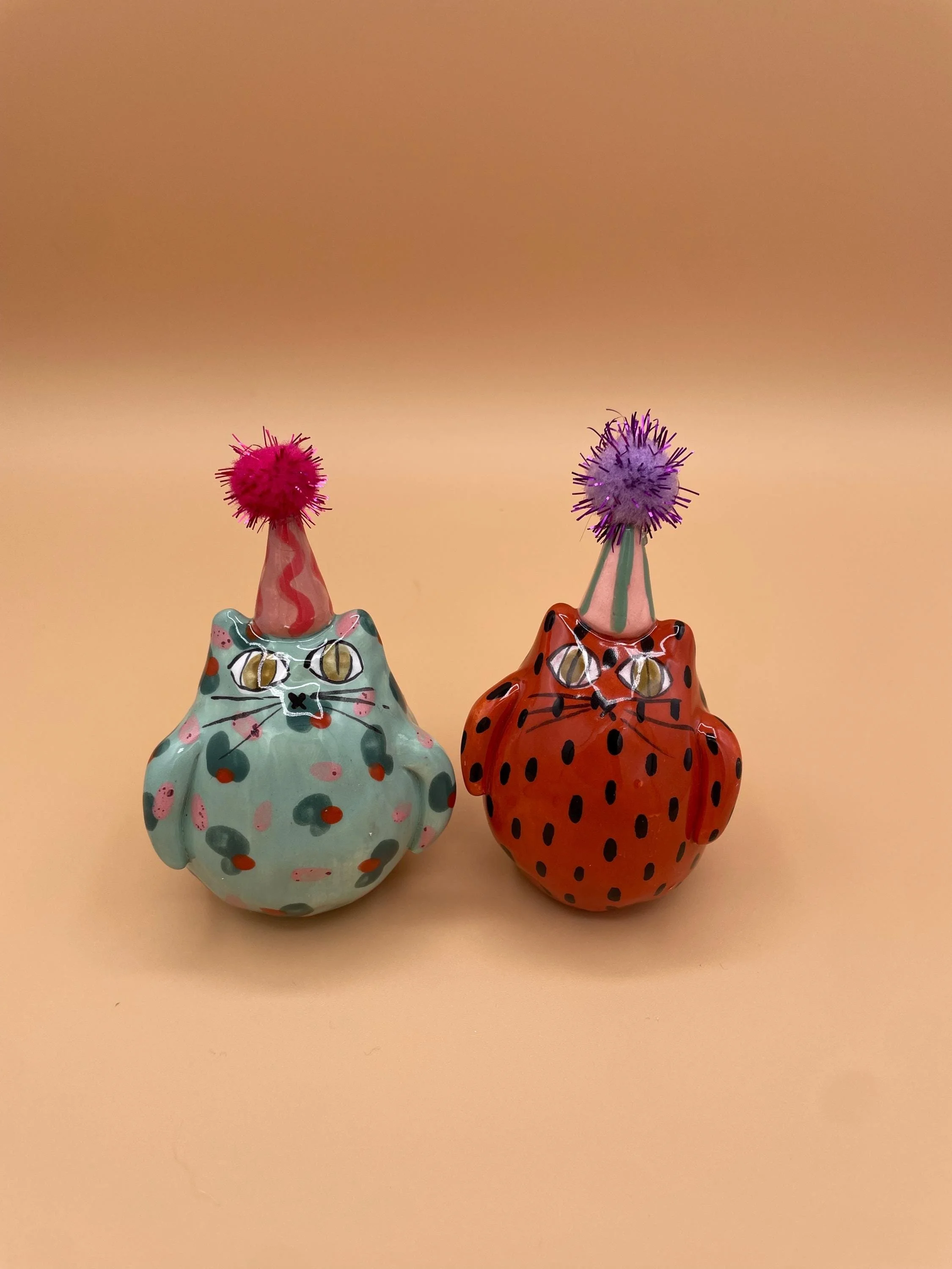 Colorful Party Cat Shakers/Maracas In Party Hats