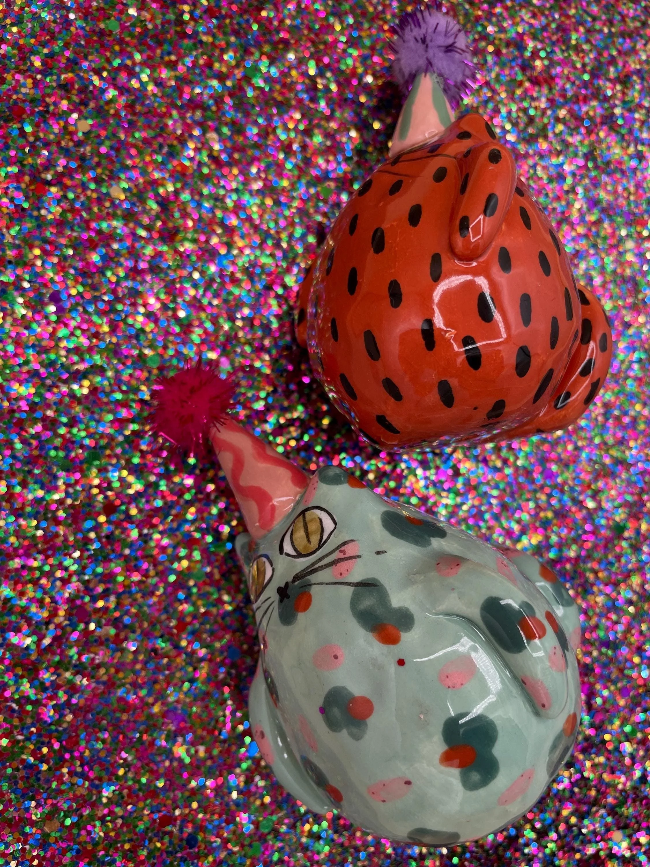 Shake up some feline fun with these delightfully quirky handmade ceramic cat maracas – the purr-fect mix of adorable decor and playful sound!