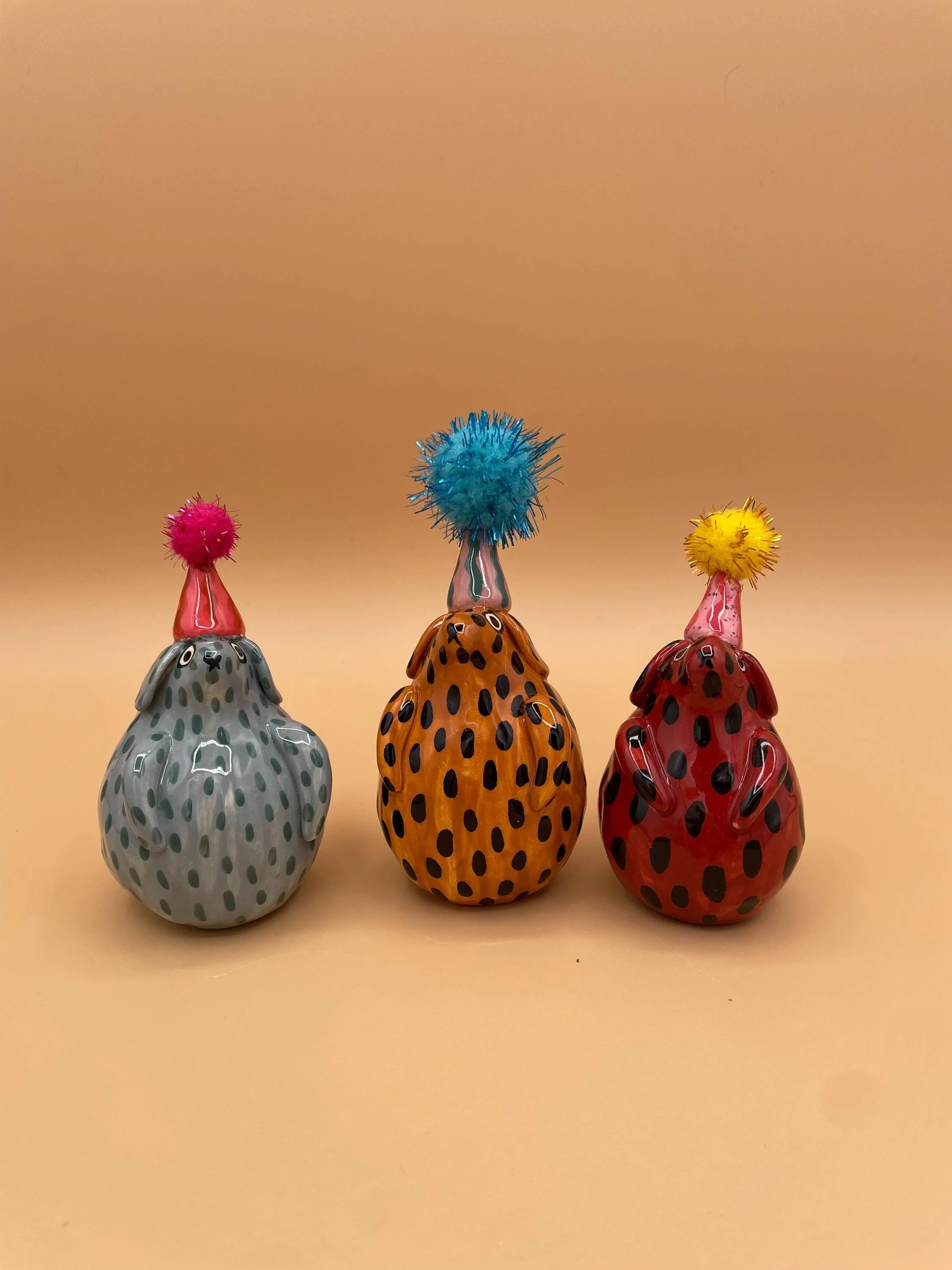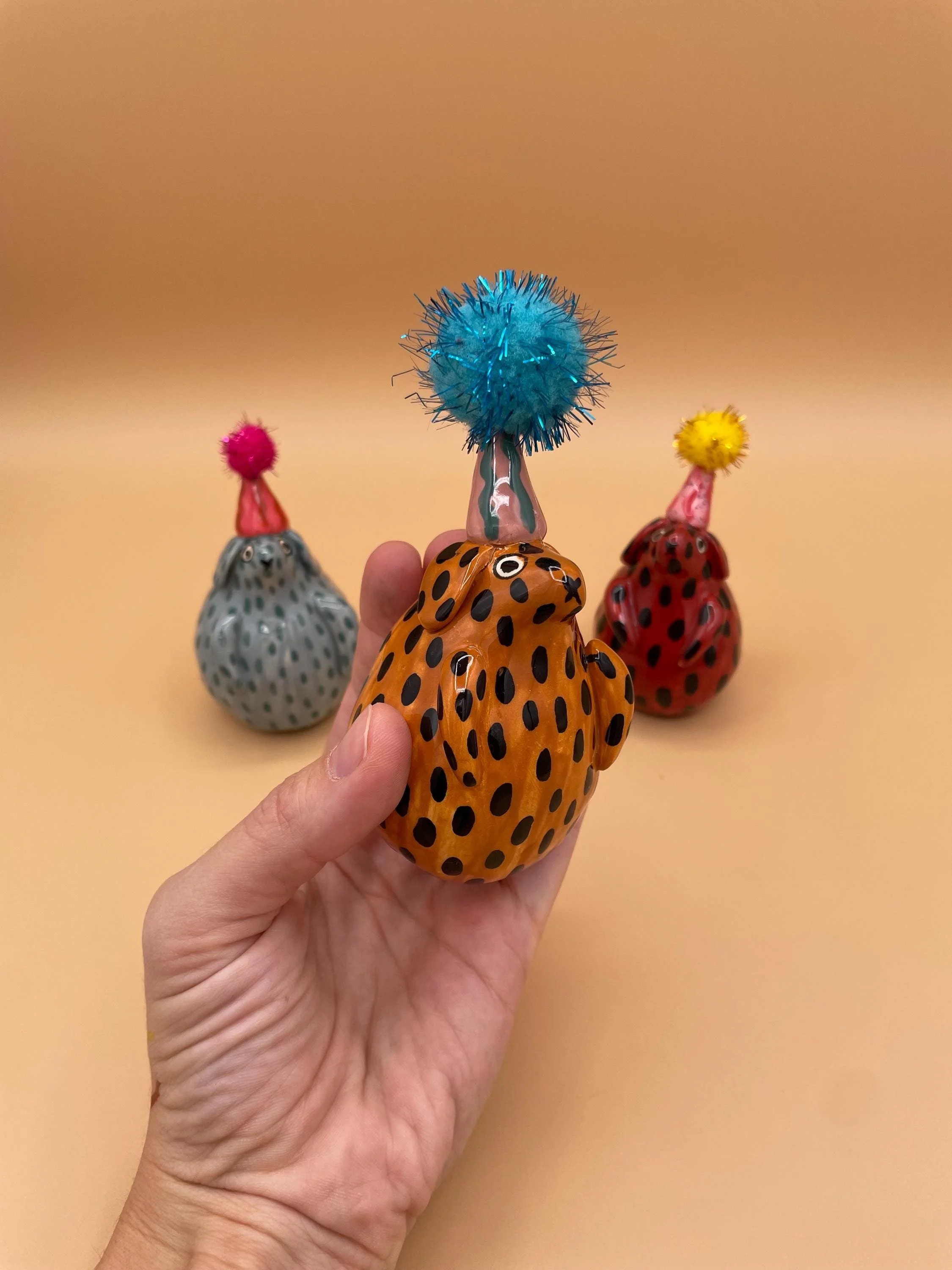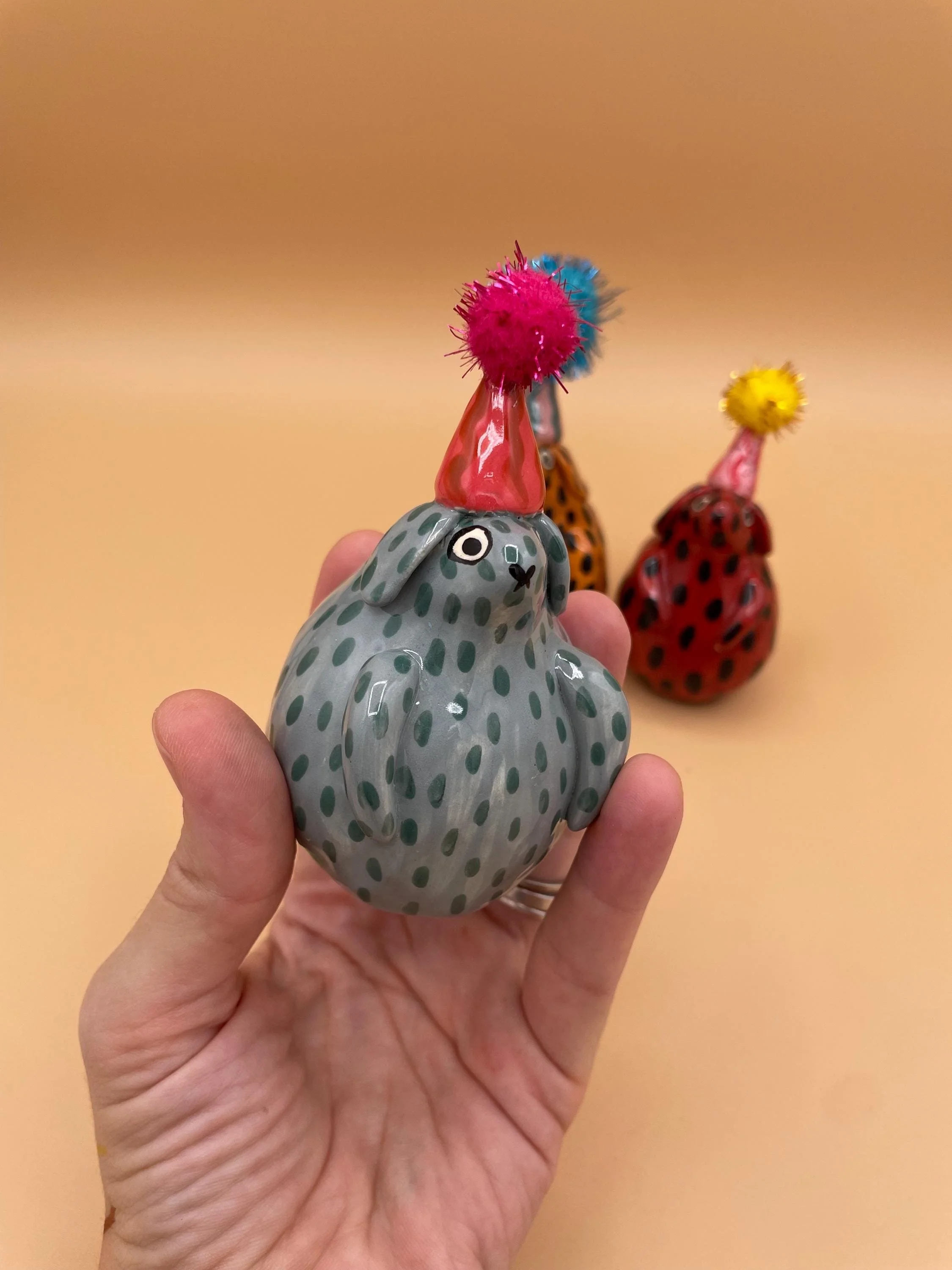 - Topped with colorful party hats and fluffy pom-poms for extra whimsy