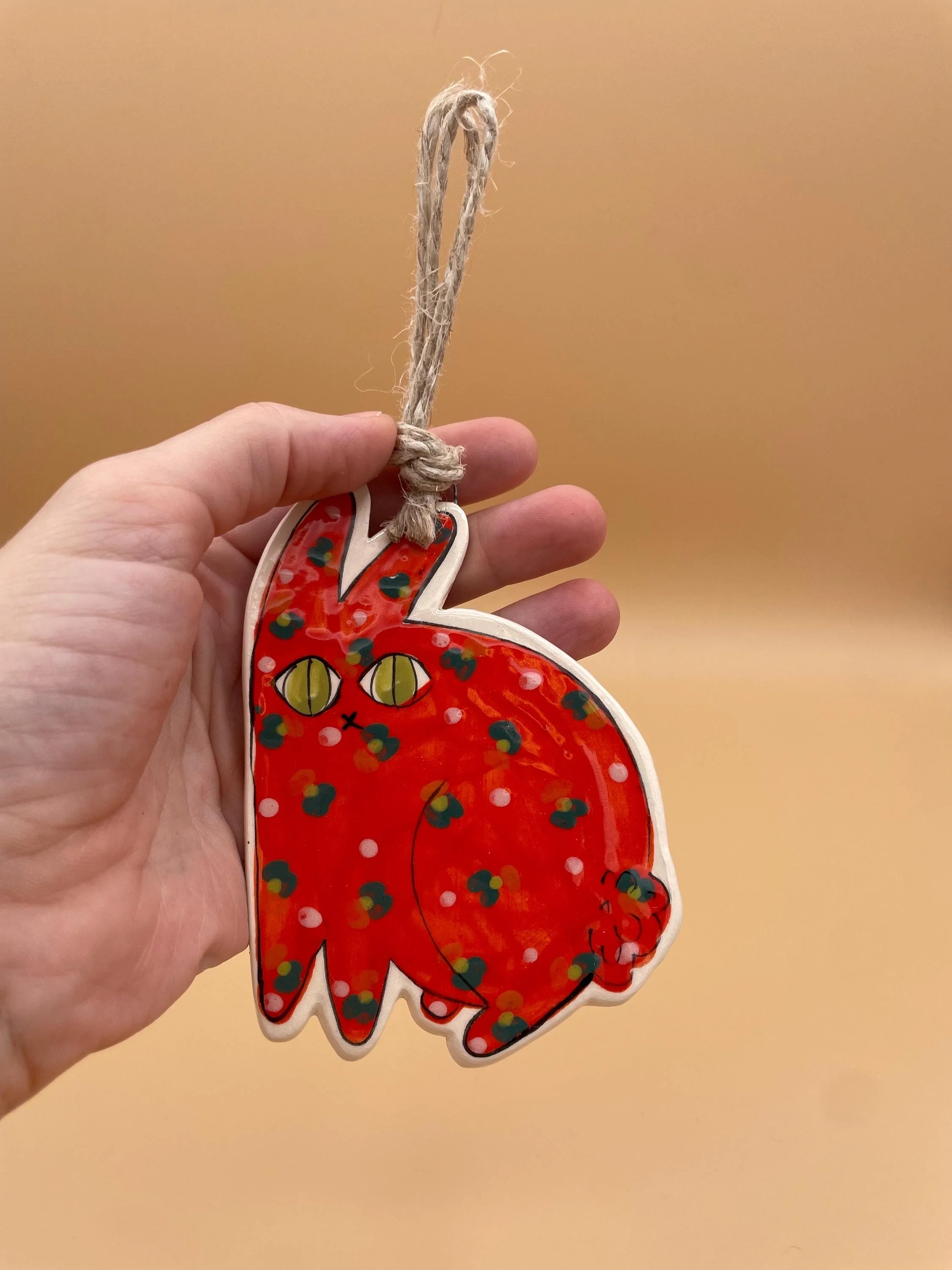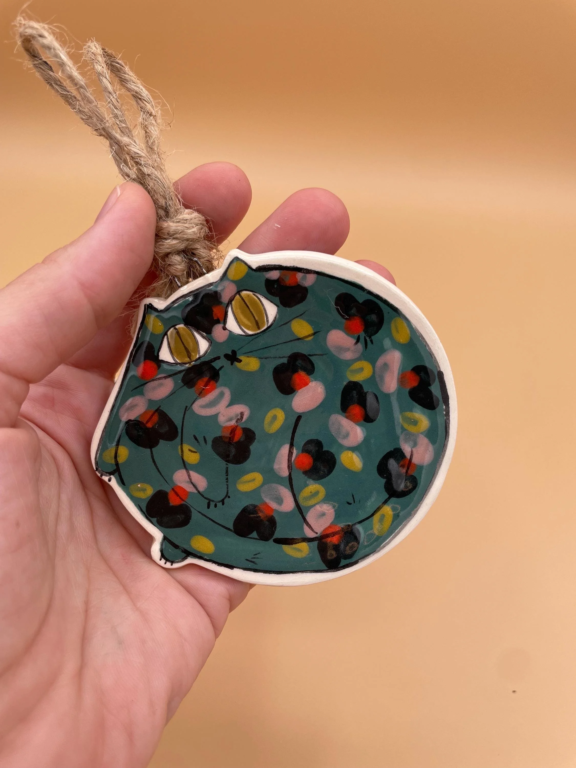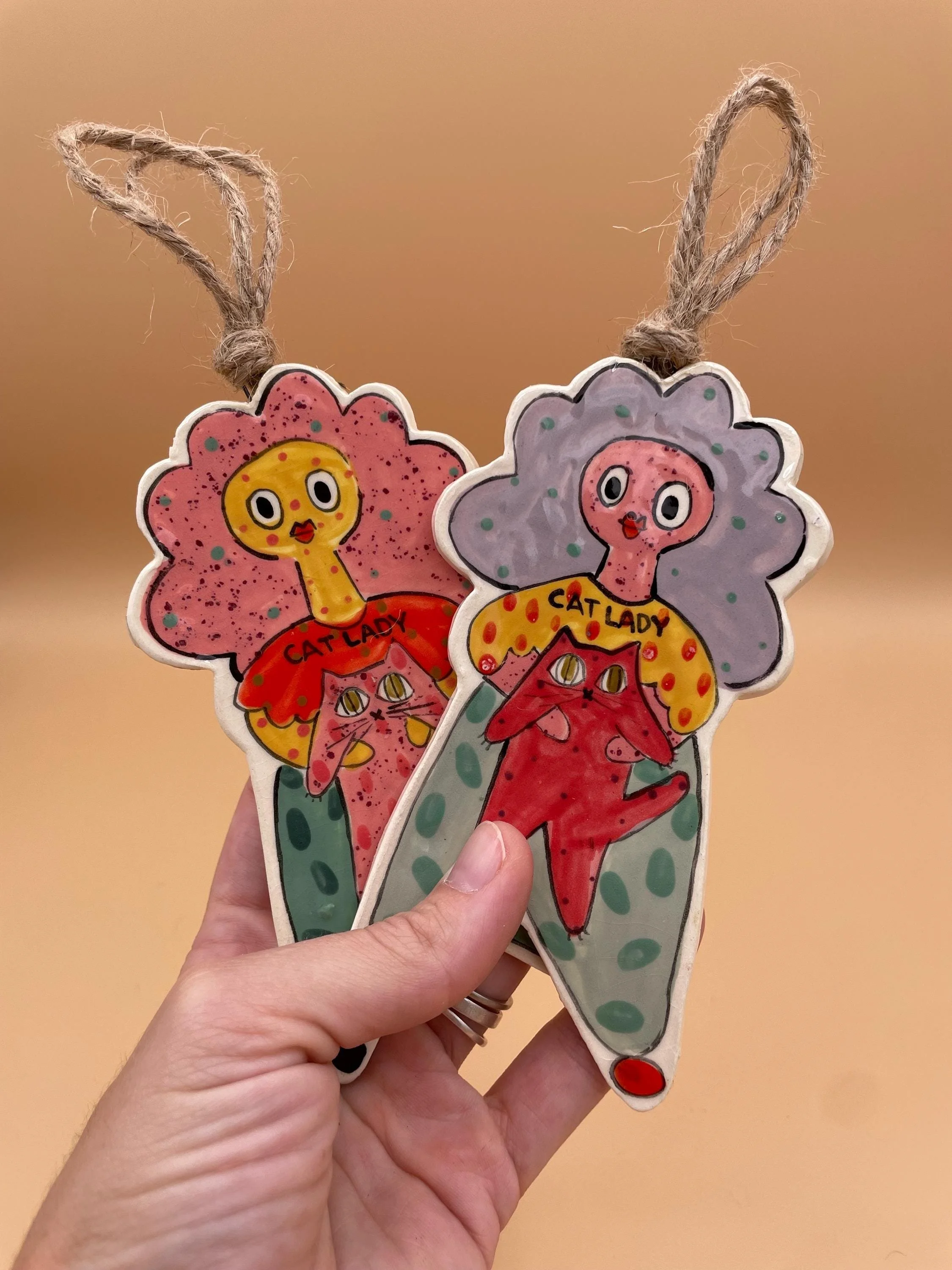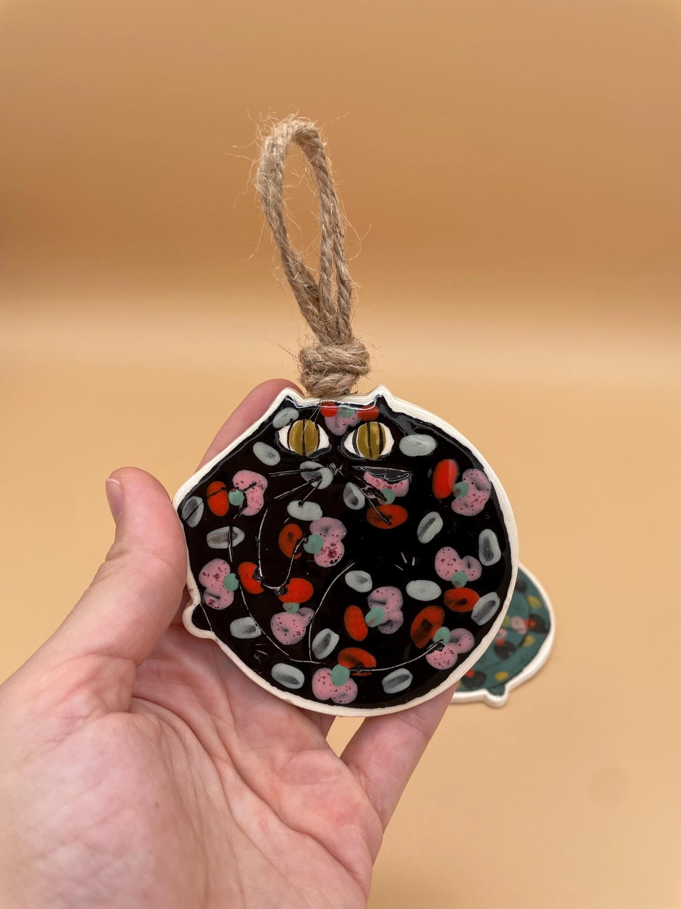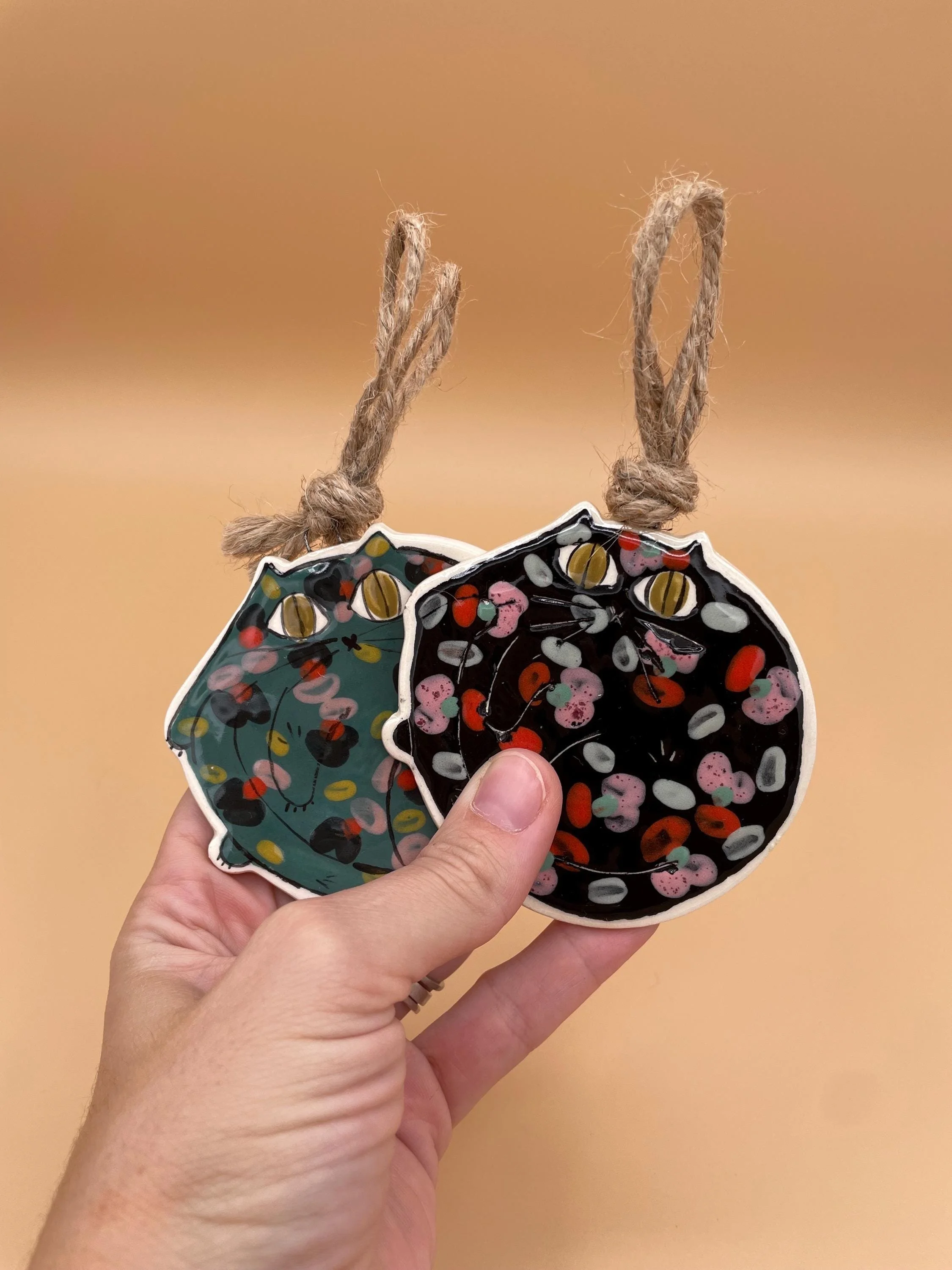 These handmade ceramic cat ornaments bring joyful color and kitty cuteness to your holidays or year round to any space. A must-have for anyone obsessed with cats and confetti vibes!