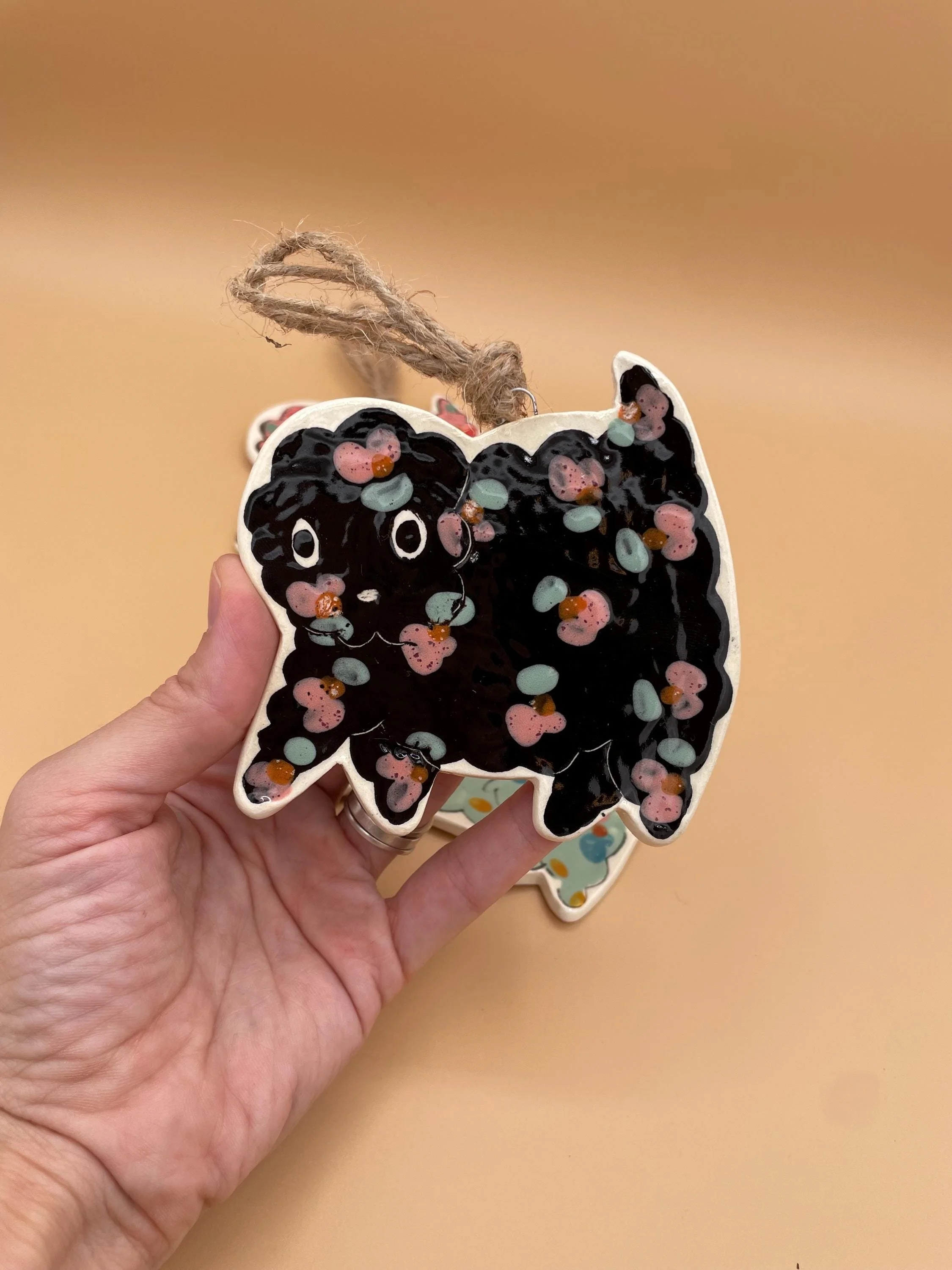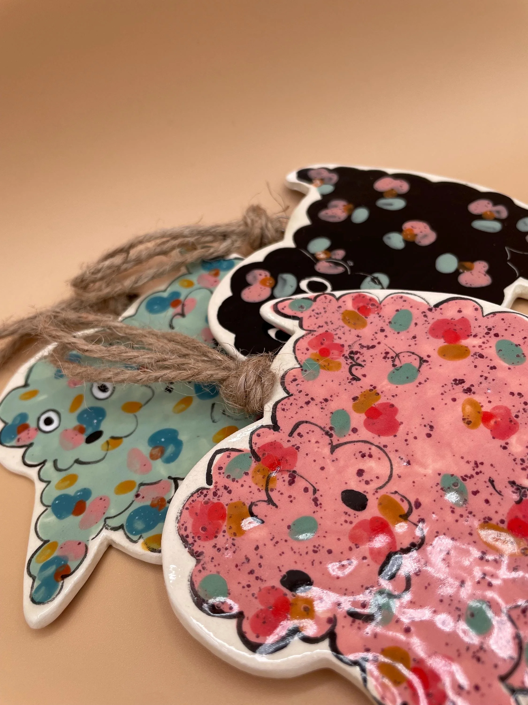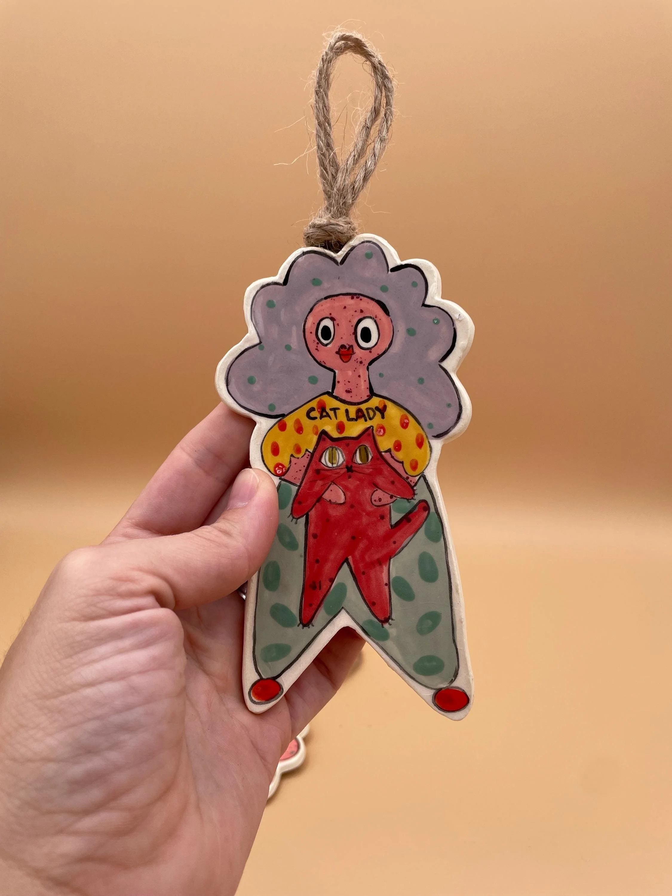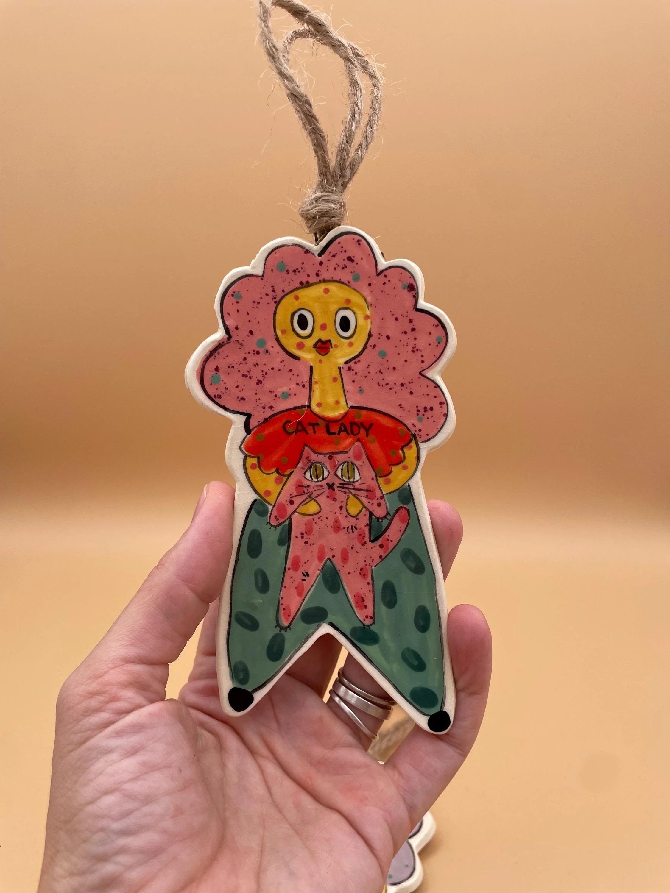 These handmade ceramic cat ornaments bring joyful color and kitty cuteness to your holidays or year round to any space. A must-have for anyone obsessed with cats and confetti vibes!