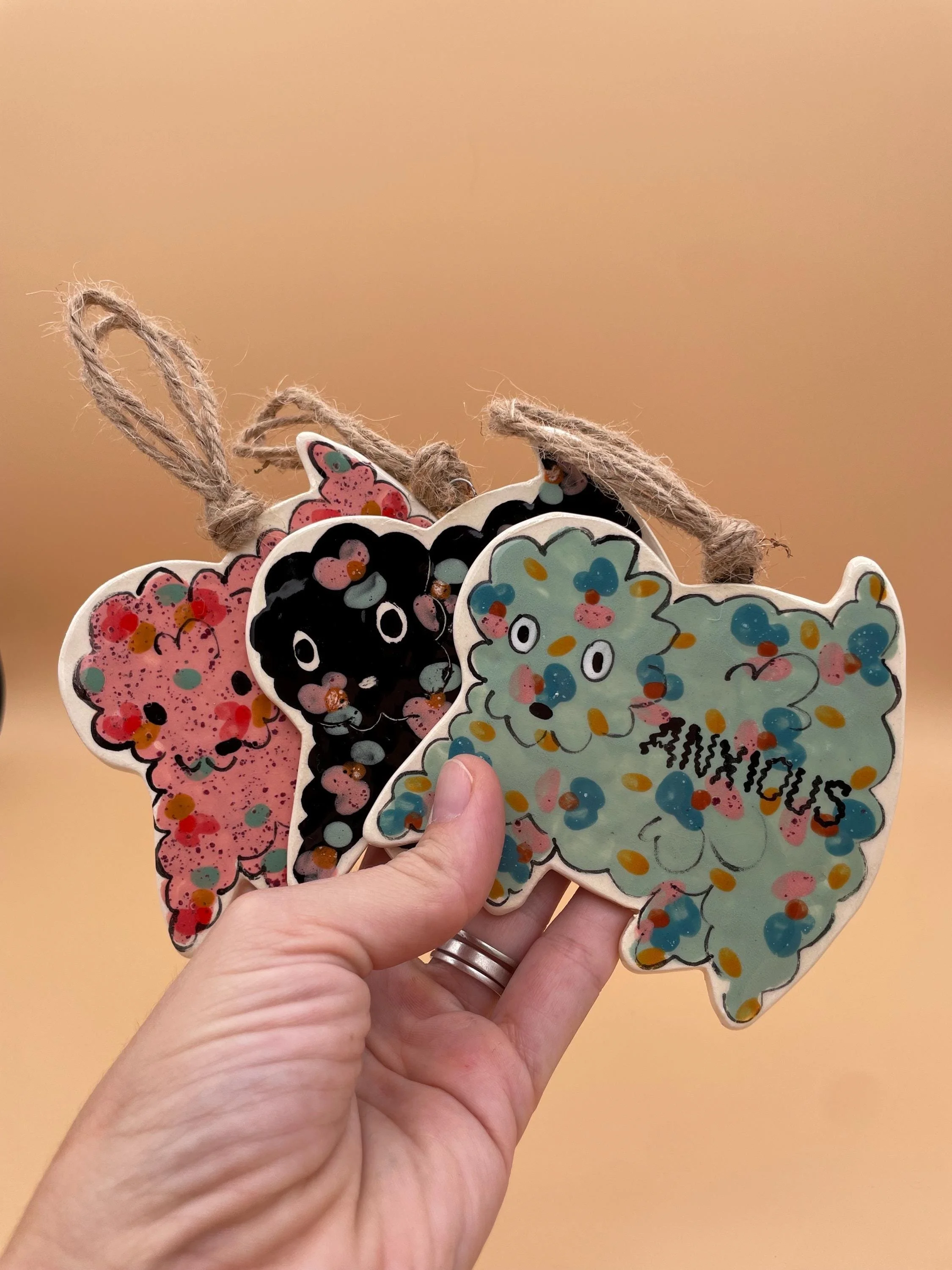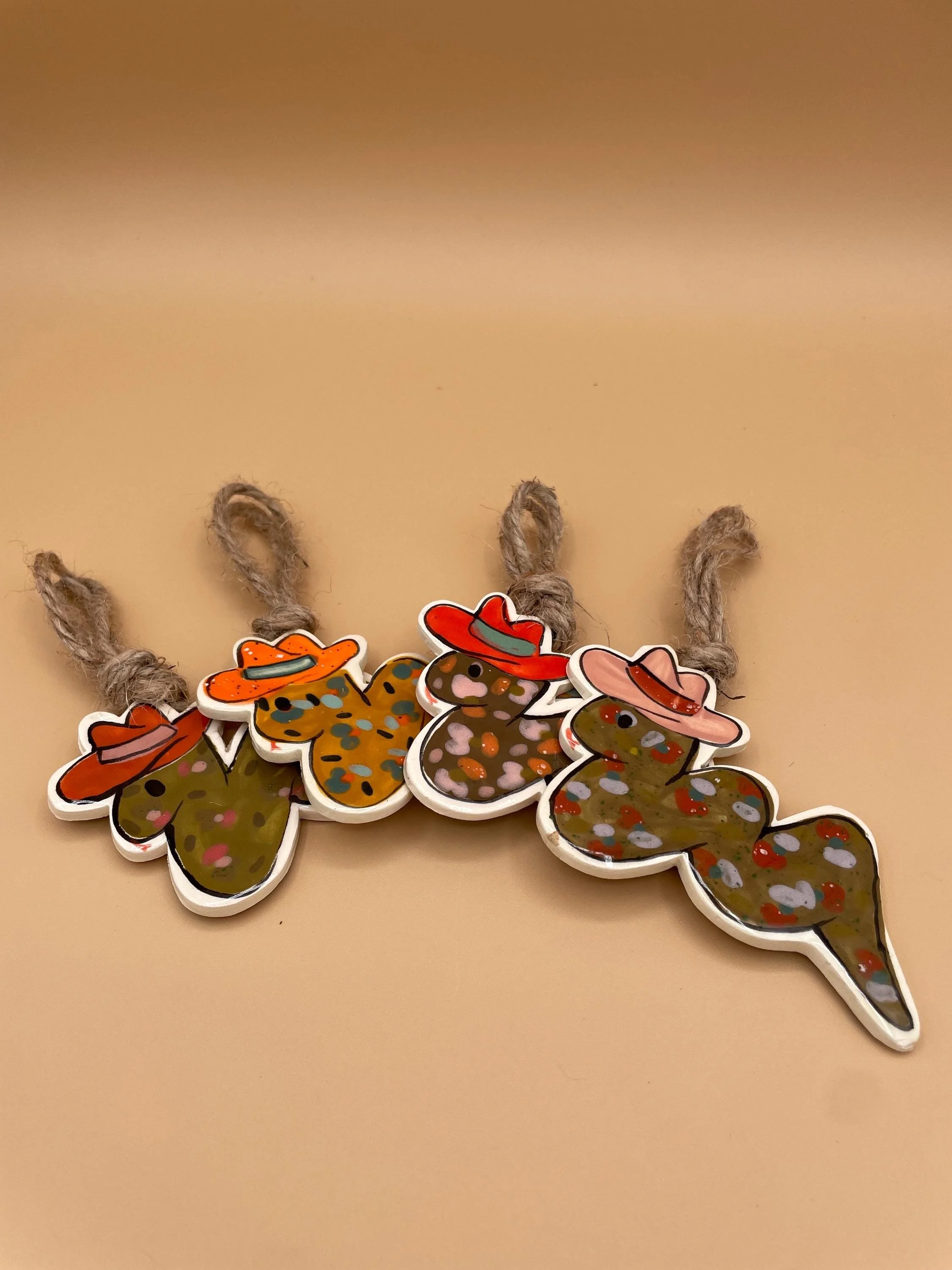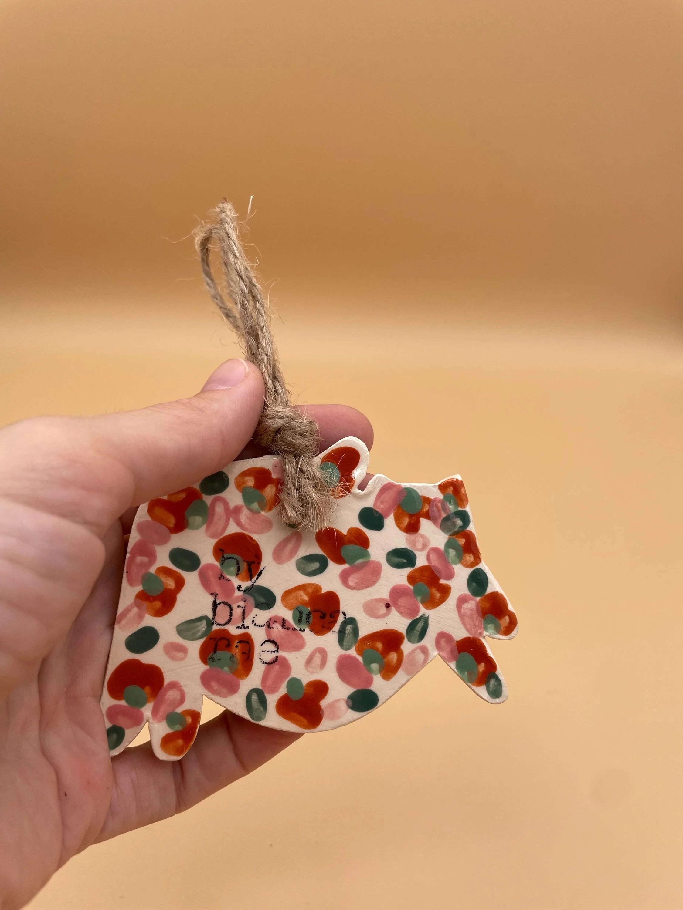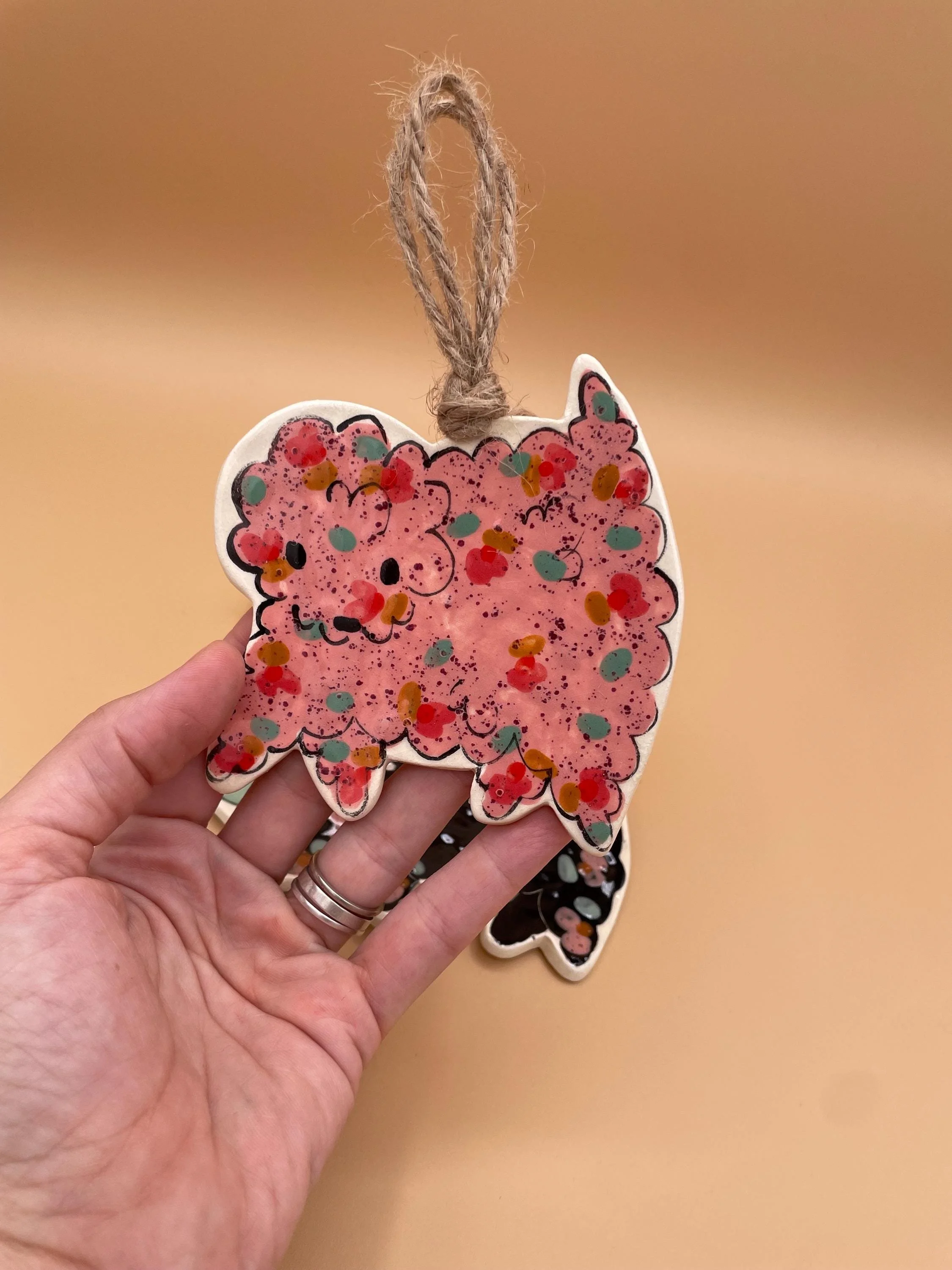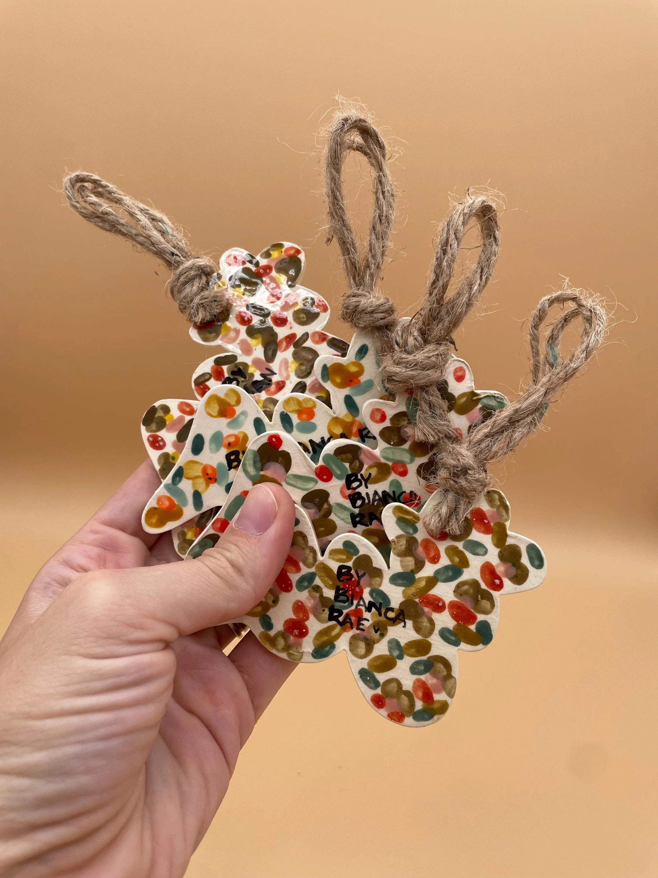 These handmade ceramic cat ornaments bring joyful color and kitty cuteness to your holidays or year round to any space. A must-have for anyone obsessed with cats and confetti vibes!