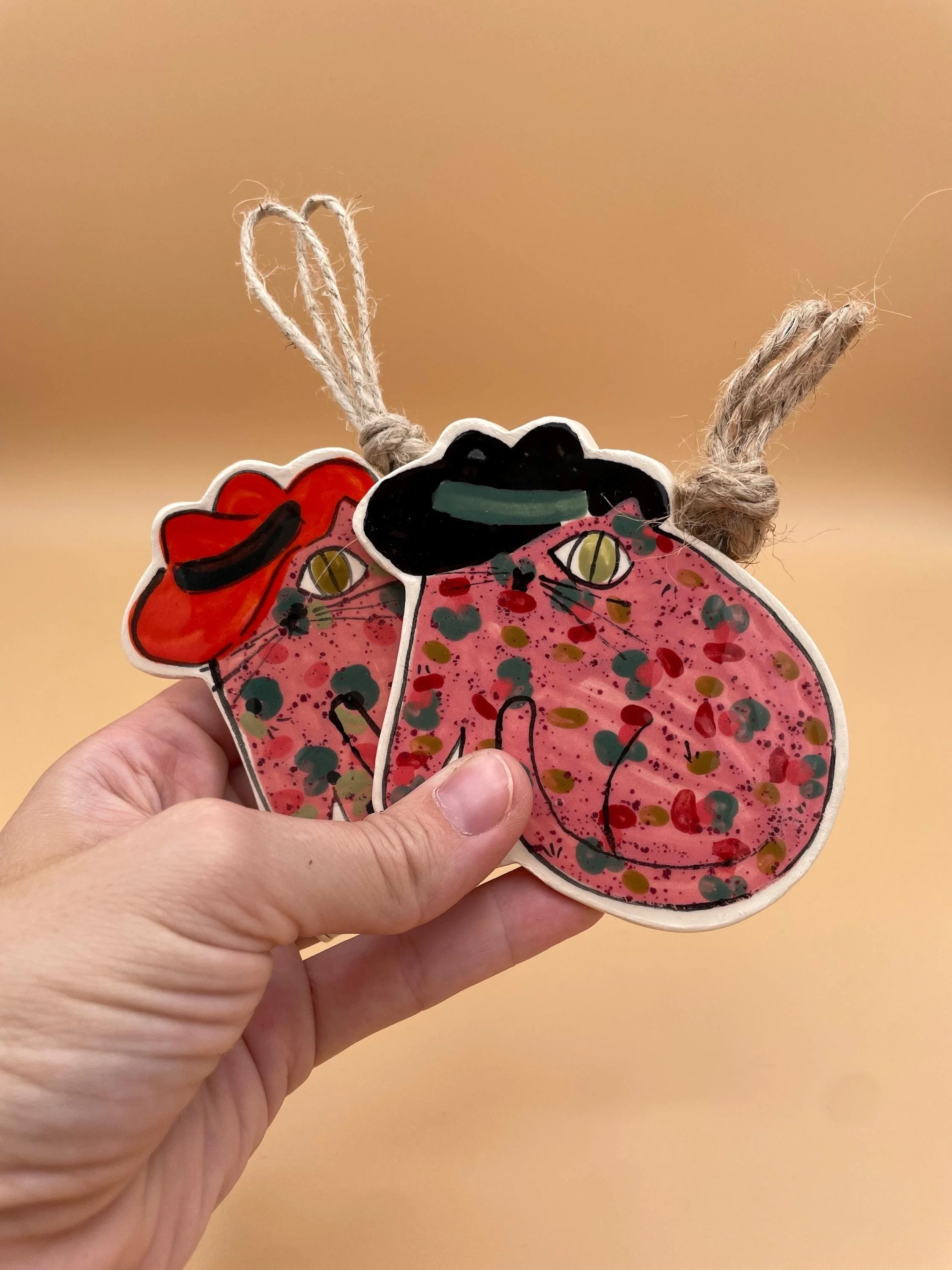 These **handpainted ceramic bird ornaments** are ideal **bird lover Christmas gifts** or funny decorations that celebrate the silly side of our fine-feathered friends. Add a touch of humor to your holidays!