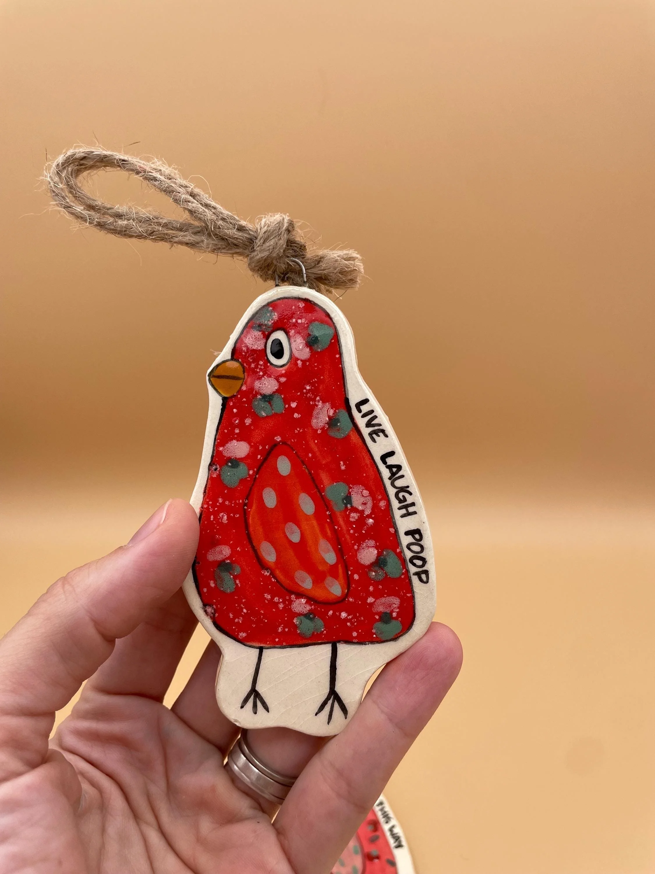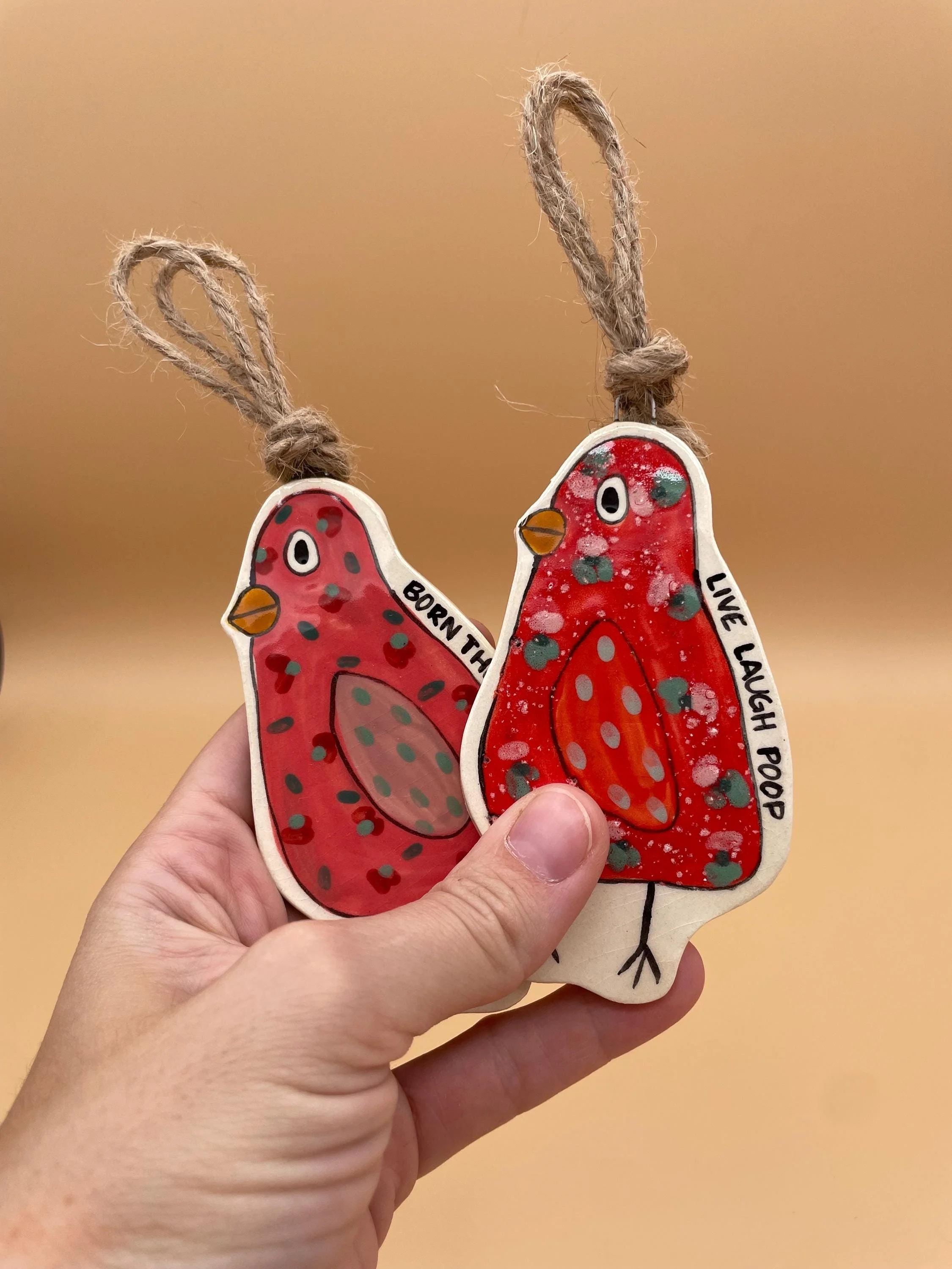 These mixed media ceramic goofy bird ornaments bring joyful chaos and handmade magic to your holidays. Because normal birds are boring – go for the weird ones!