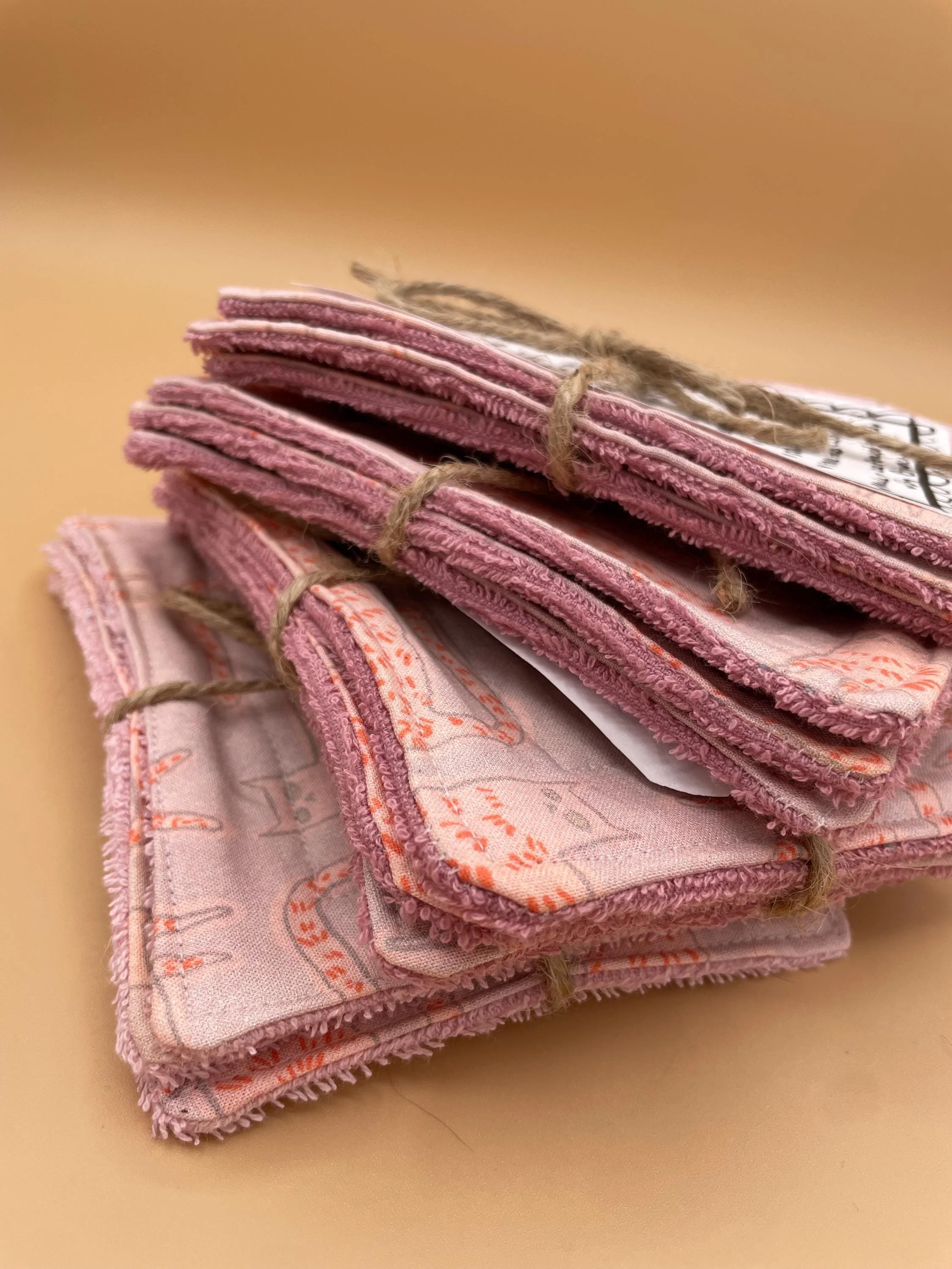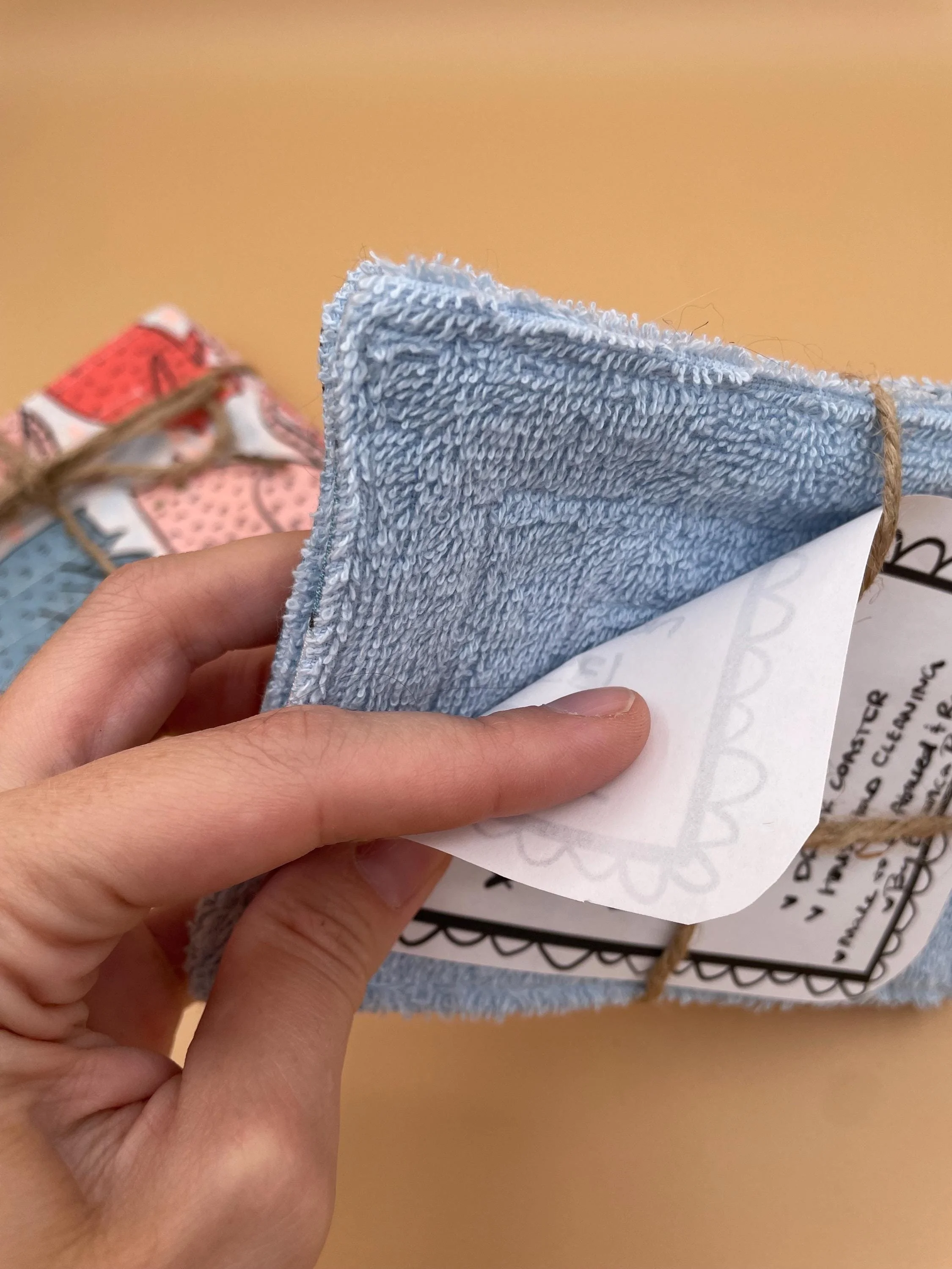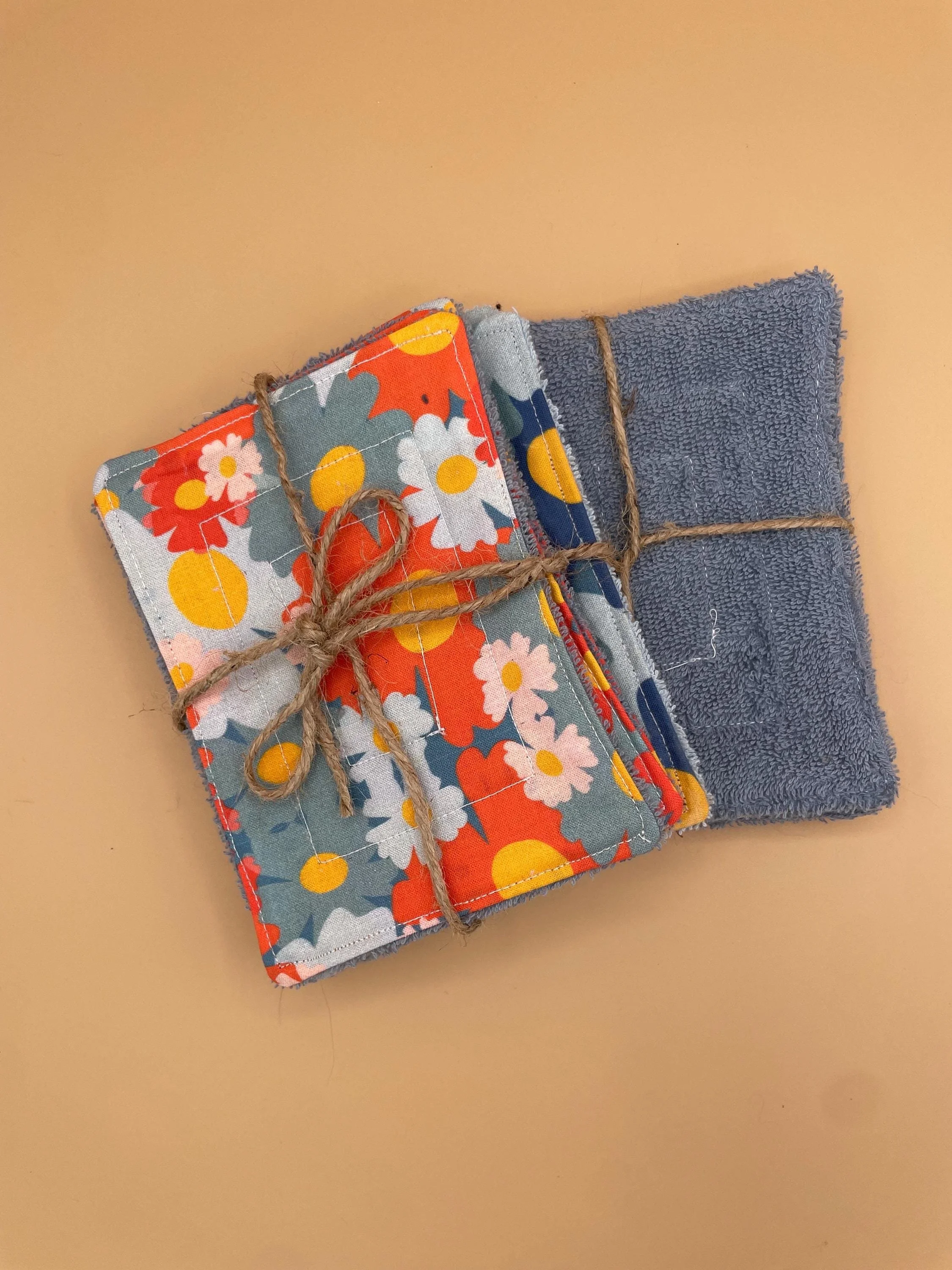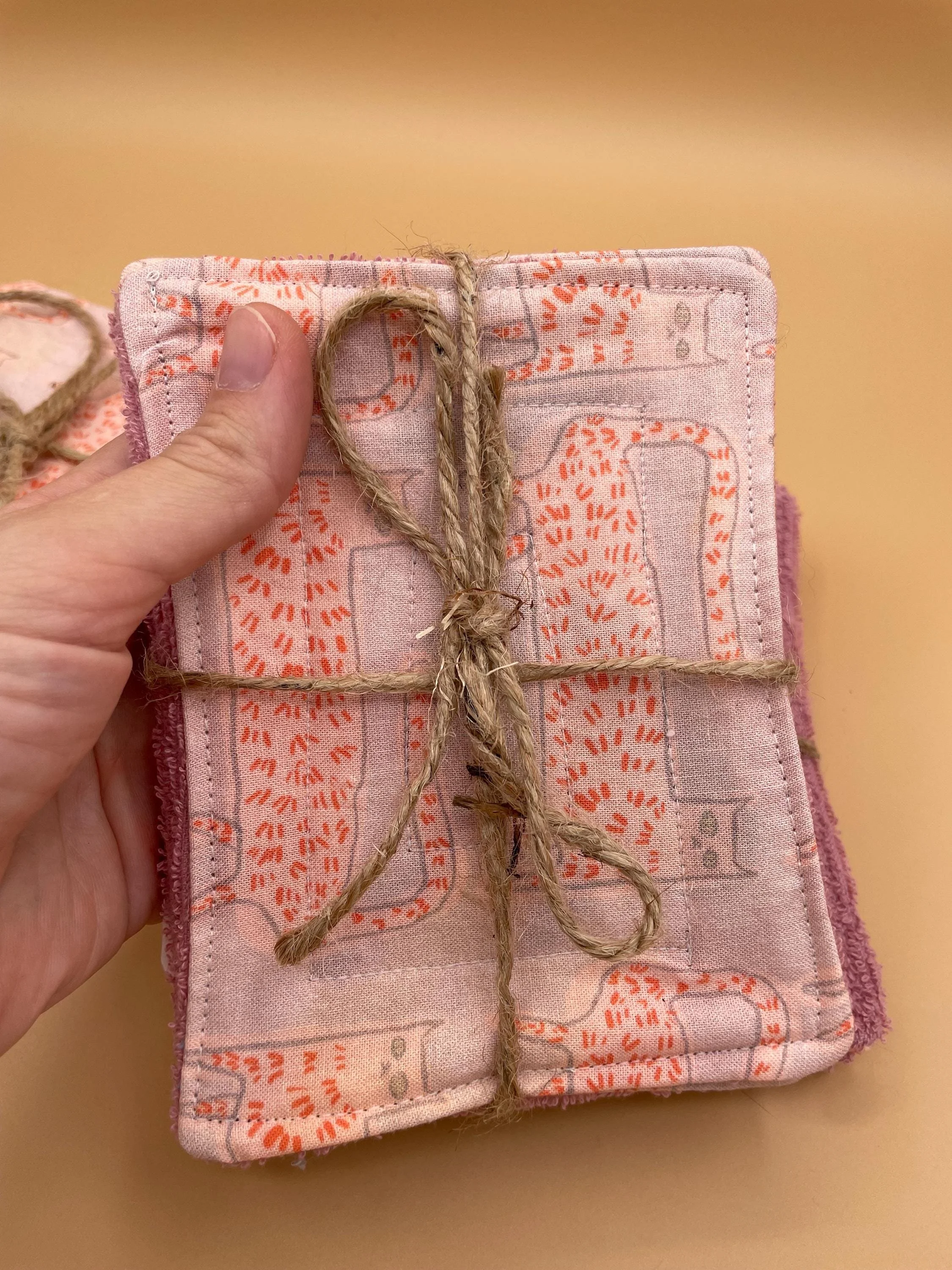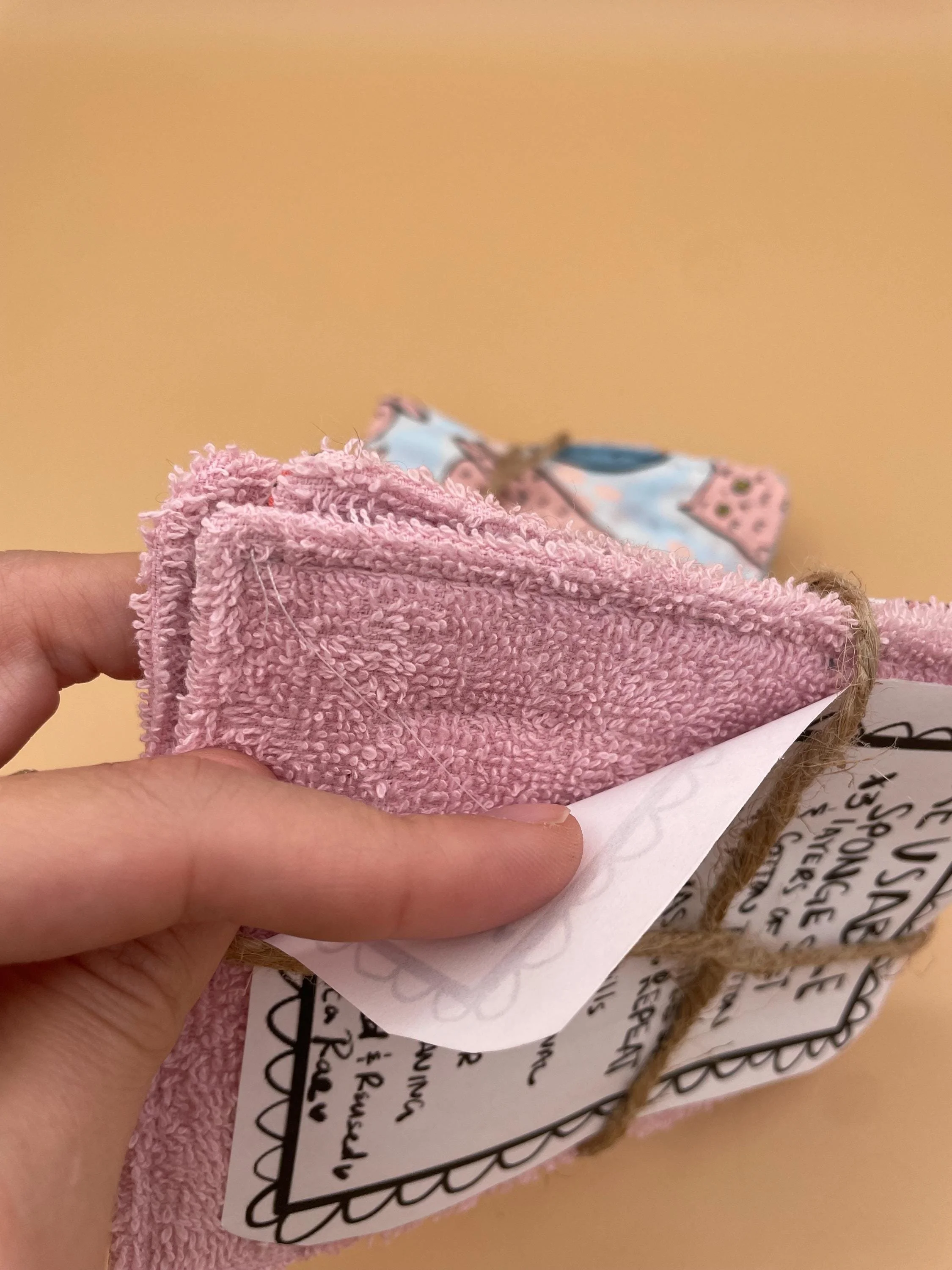 reusable sponge set of 3 washable sponges. Made with 3 layers of cotton and one layer of cotton terry. The cats featured on this fabric are a custom illustration designed and printed by me!