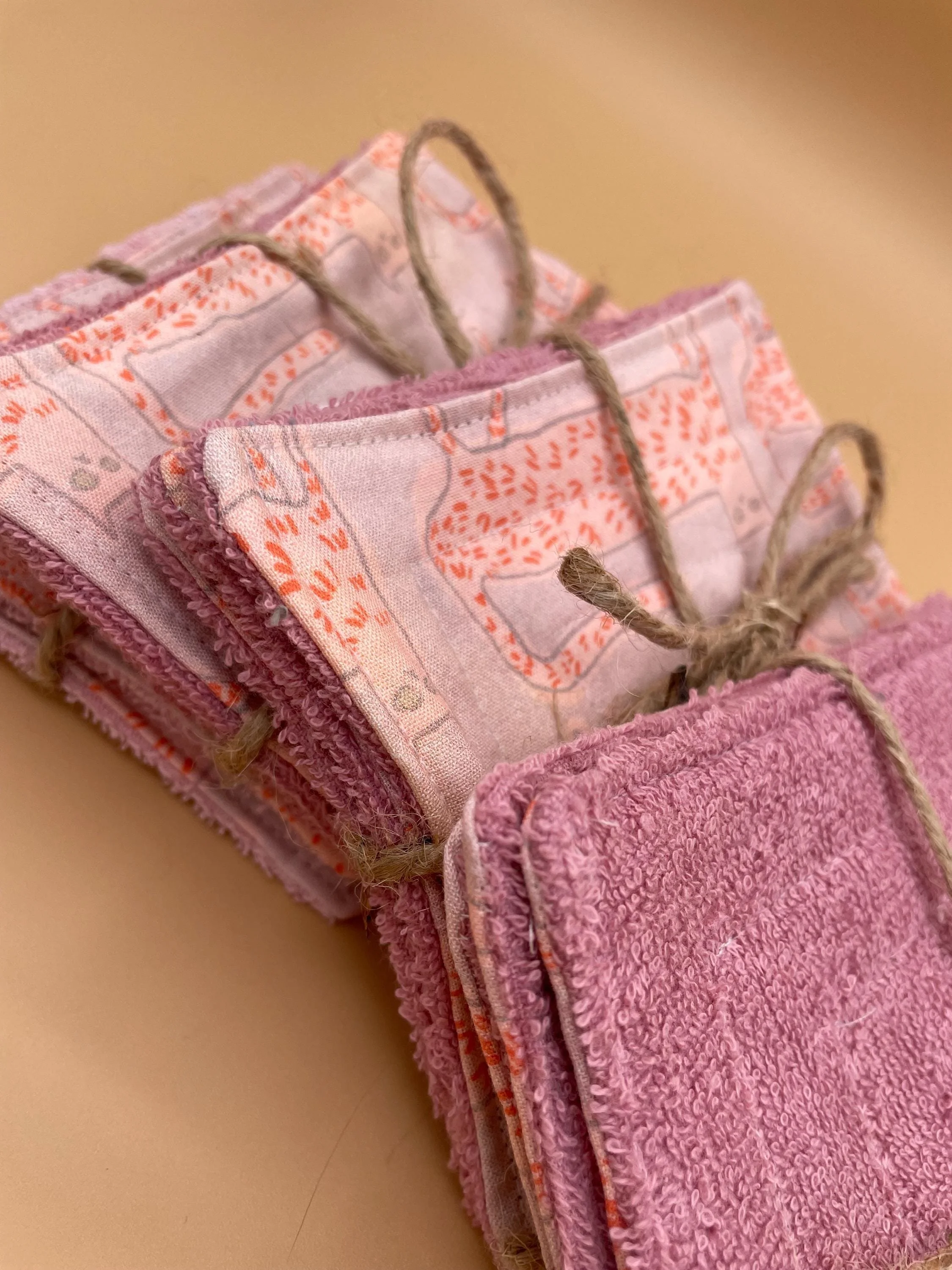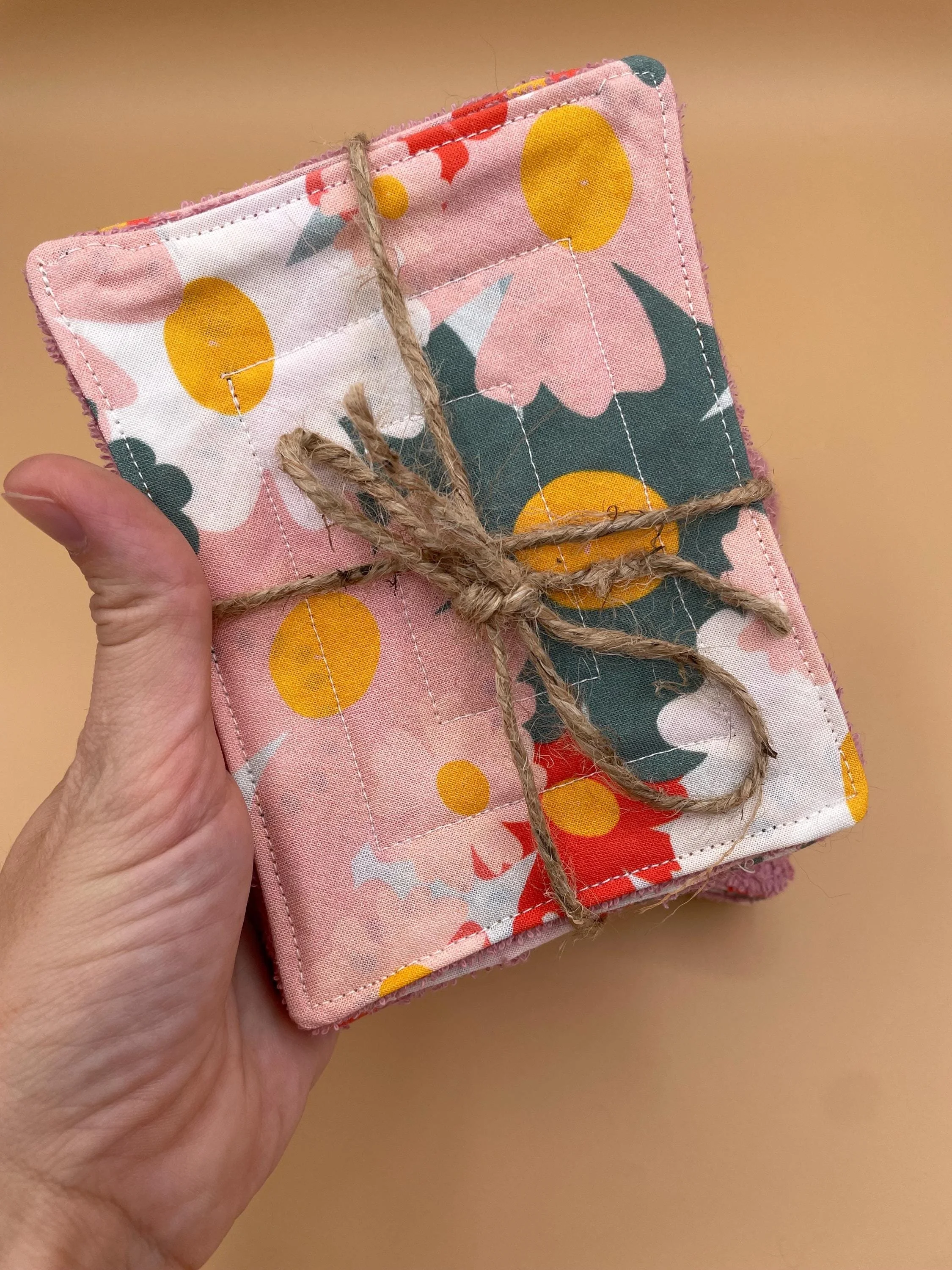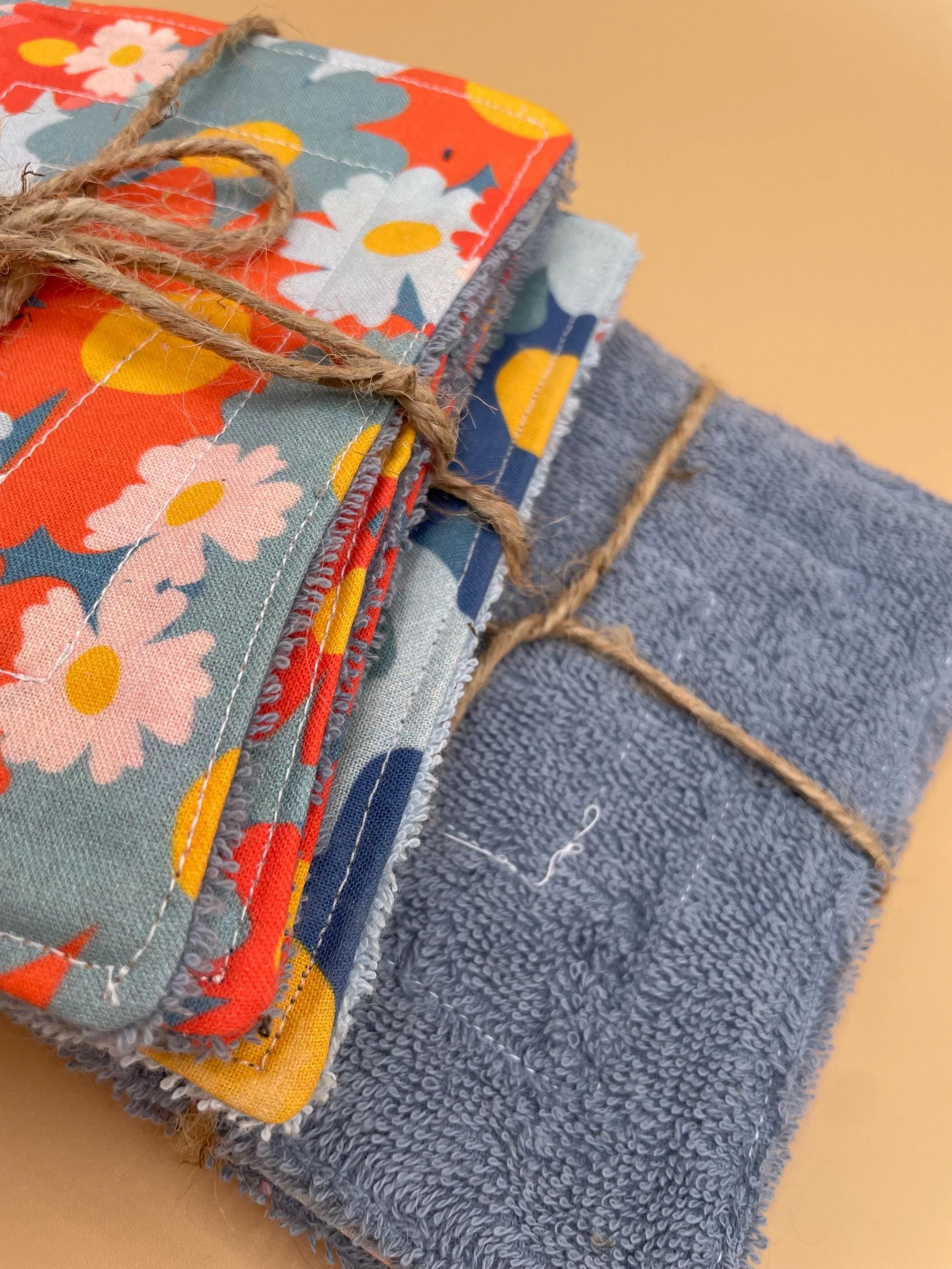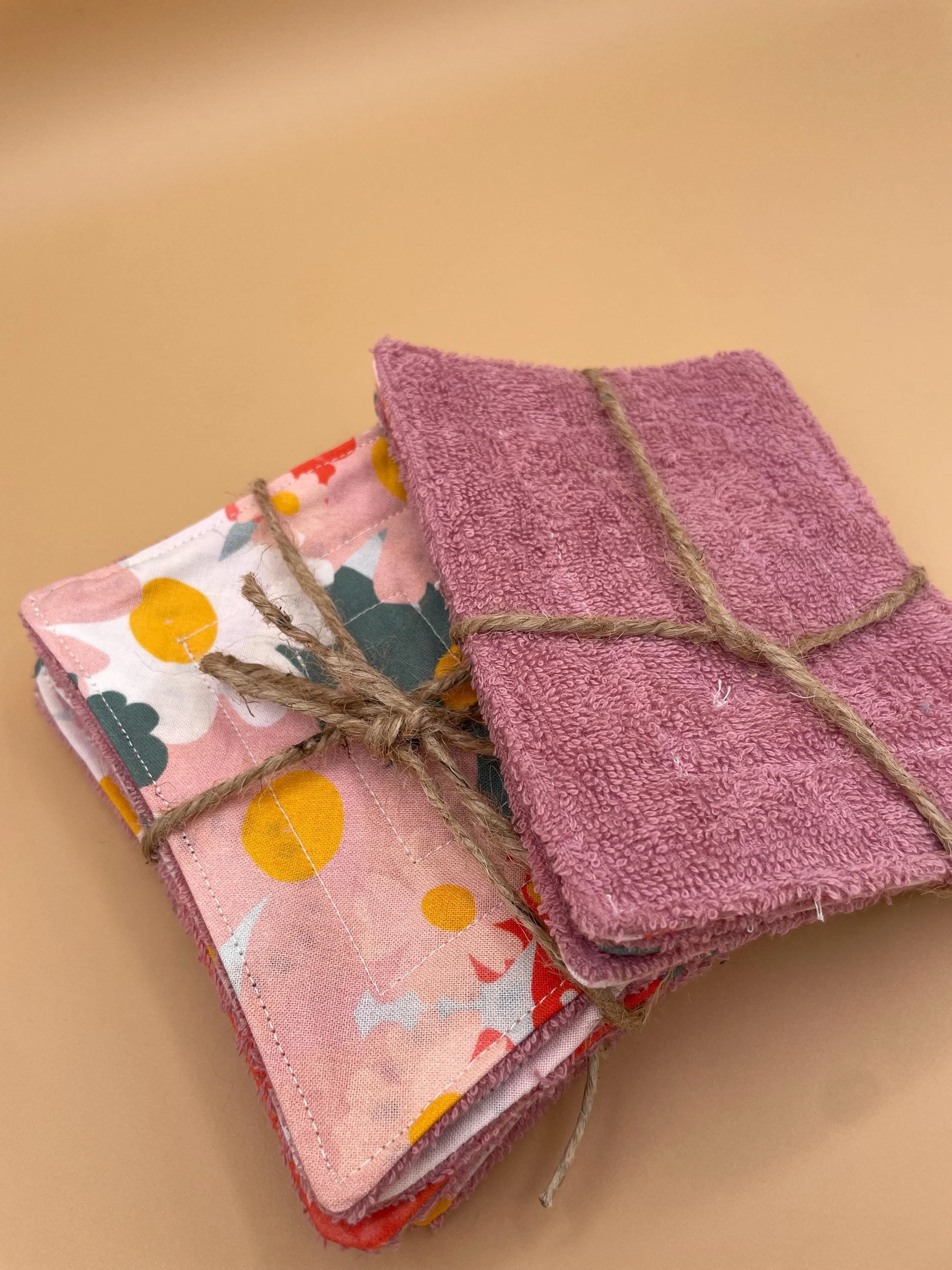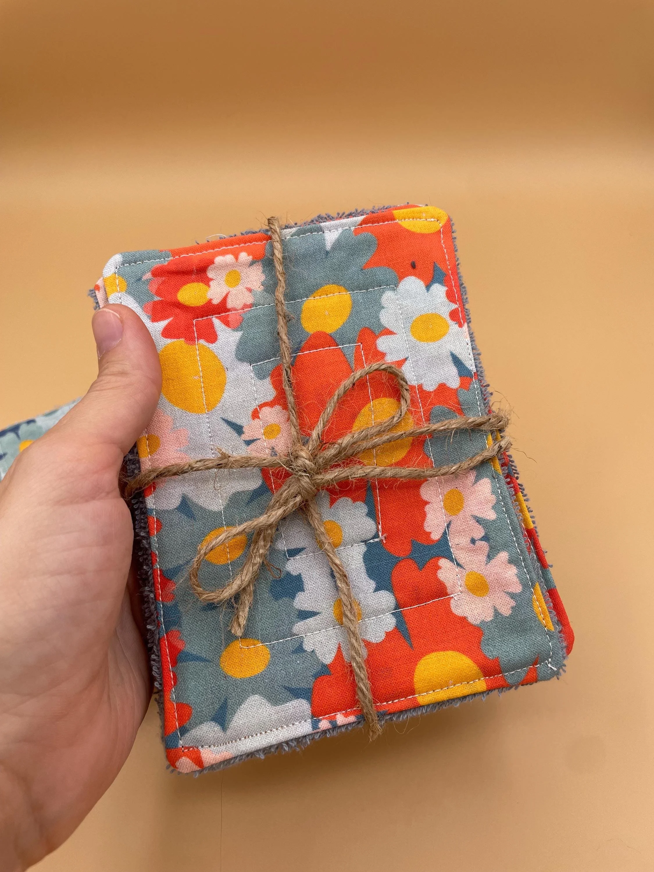 reusable sponge set of 3 washable sponges. Made with 3 layers of cotton and one layer of cotton terry. The cats featured on this fabric are a custom illustration designed and printed by me!