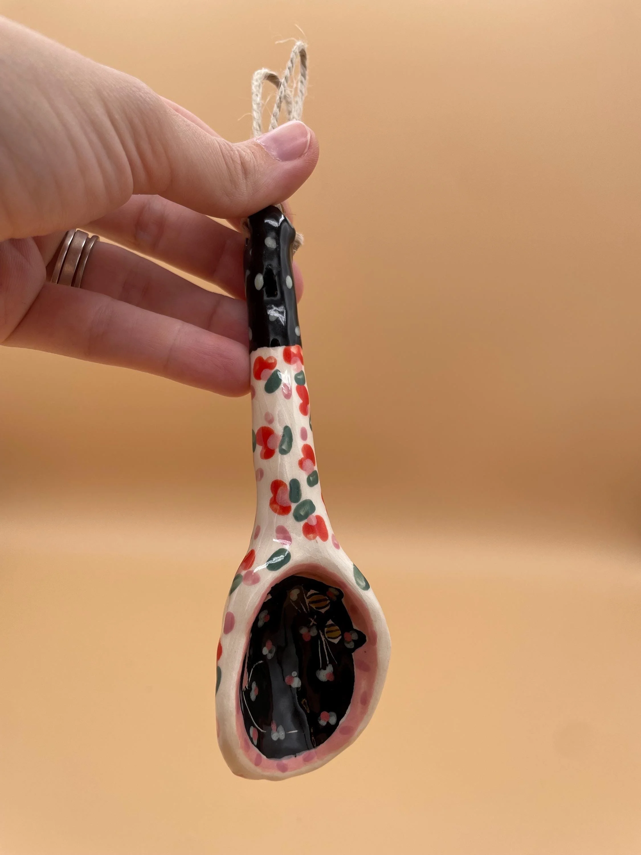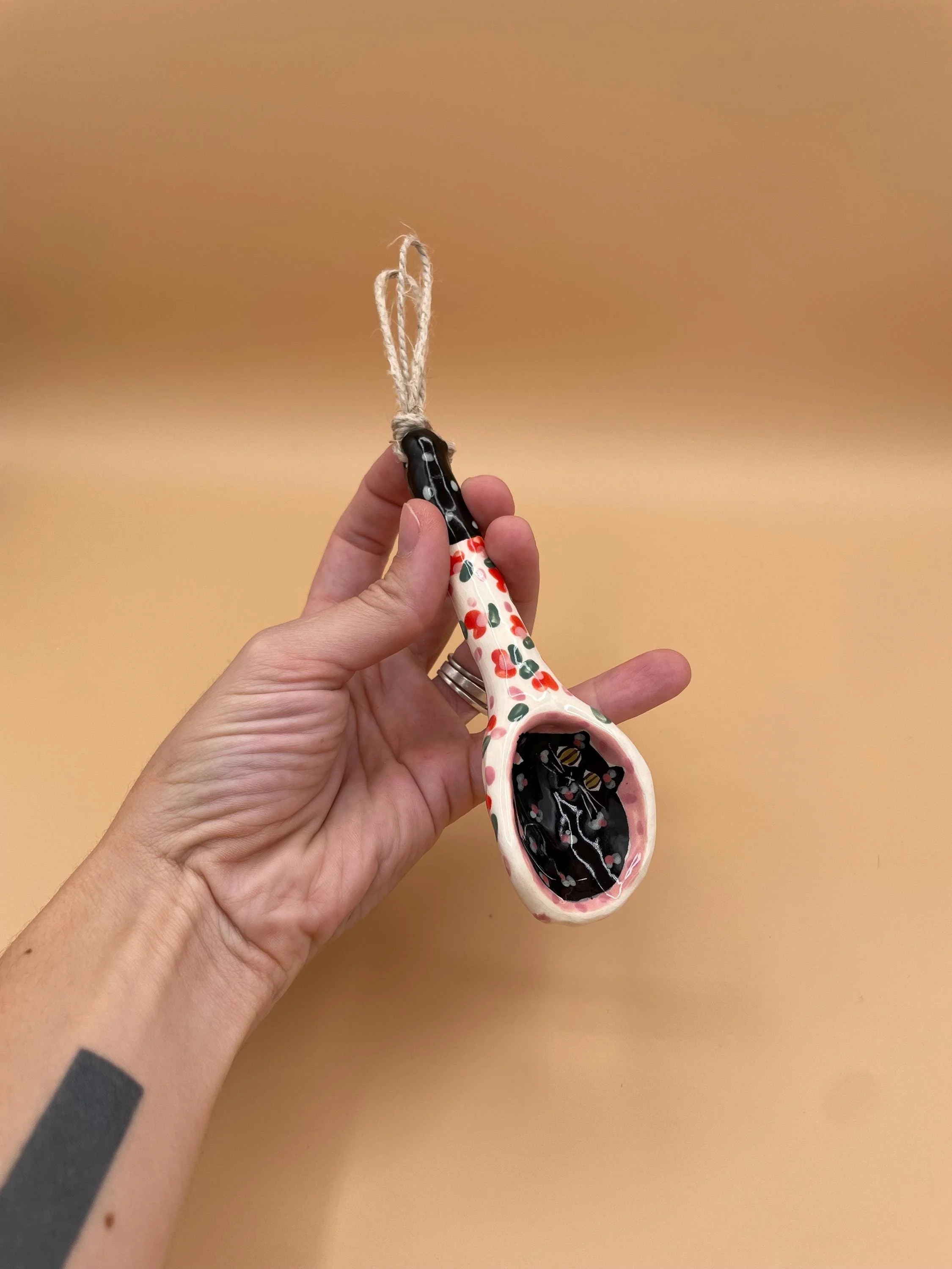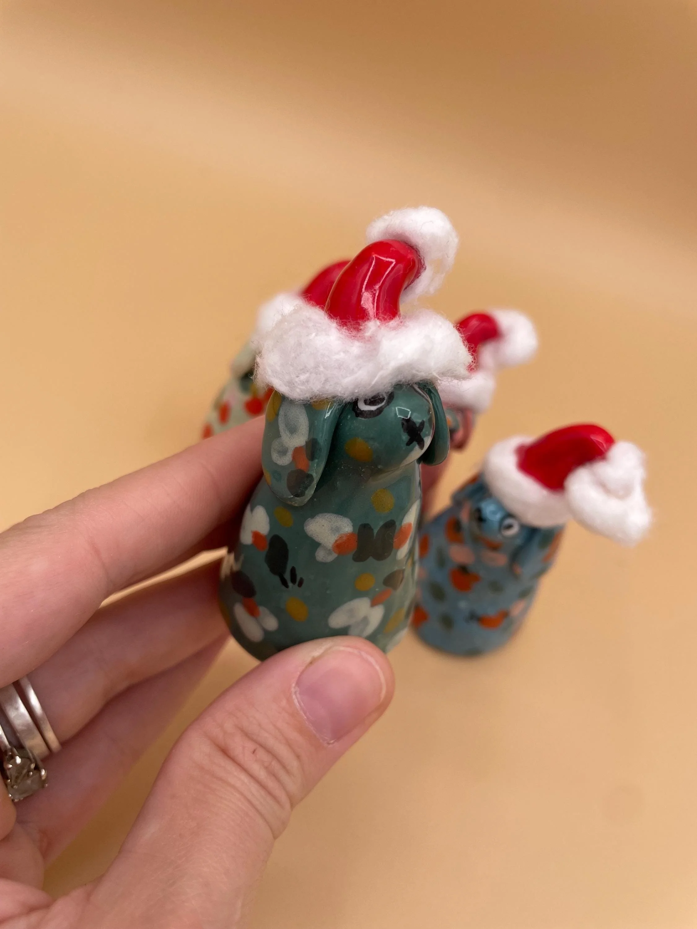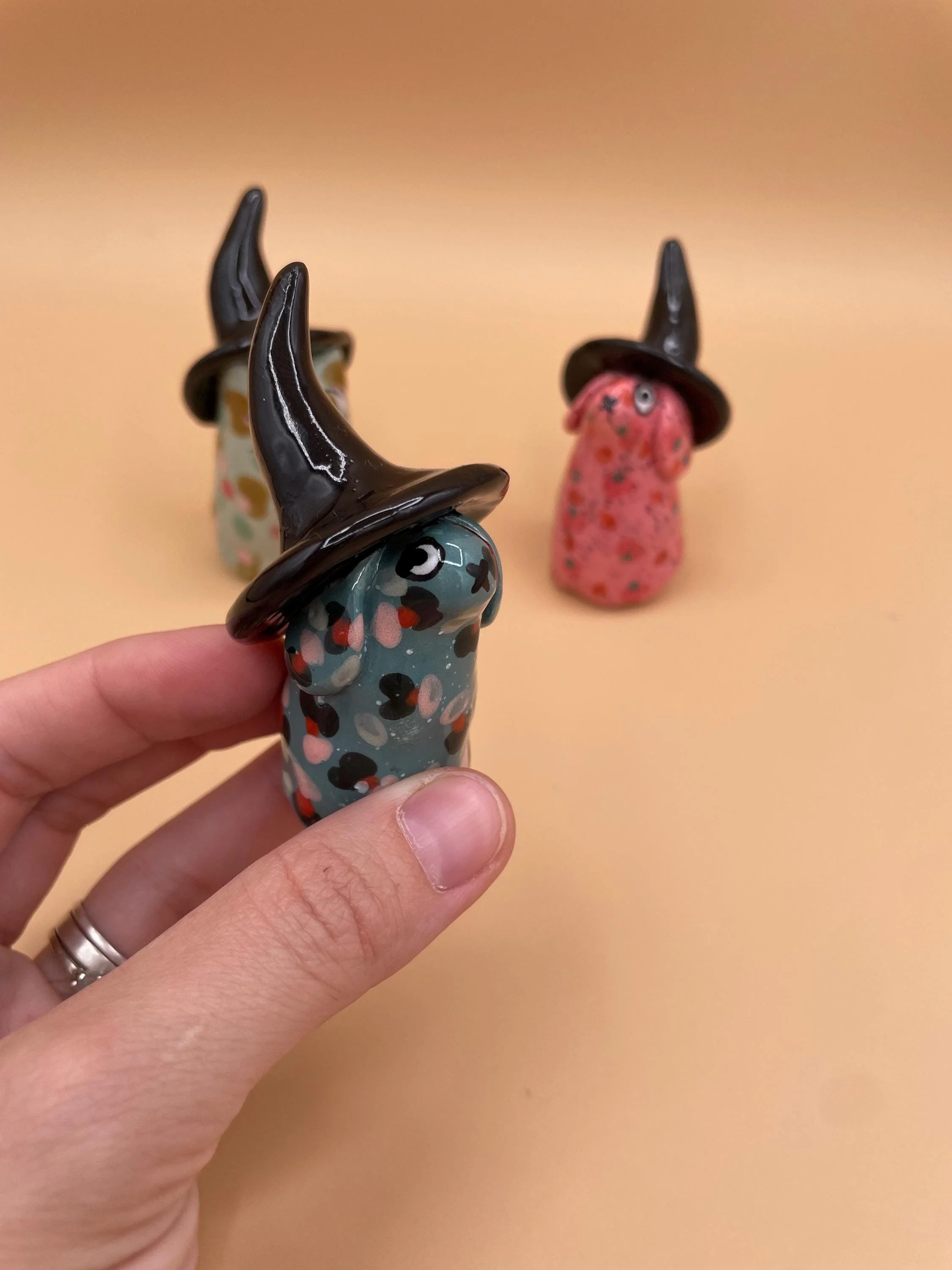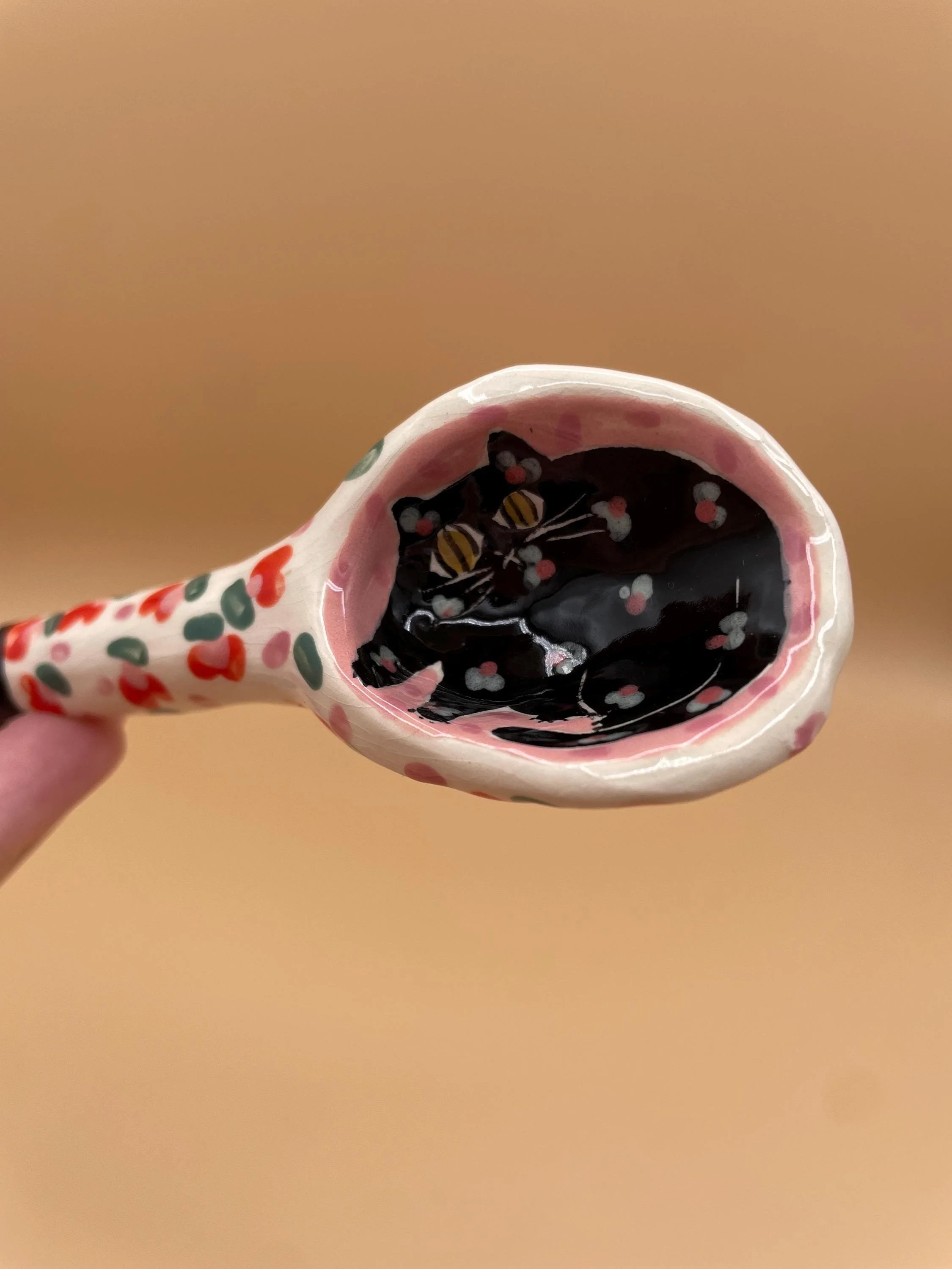 This stretched and speckled party cat is looking for her fur-ever home on your favorite shelf, window sil or office space! Measuring approximately 6 inches long by 3 inches tall, she's the perfect addition to any space! I know she'll bring a smile to your face every time you look at her.