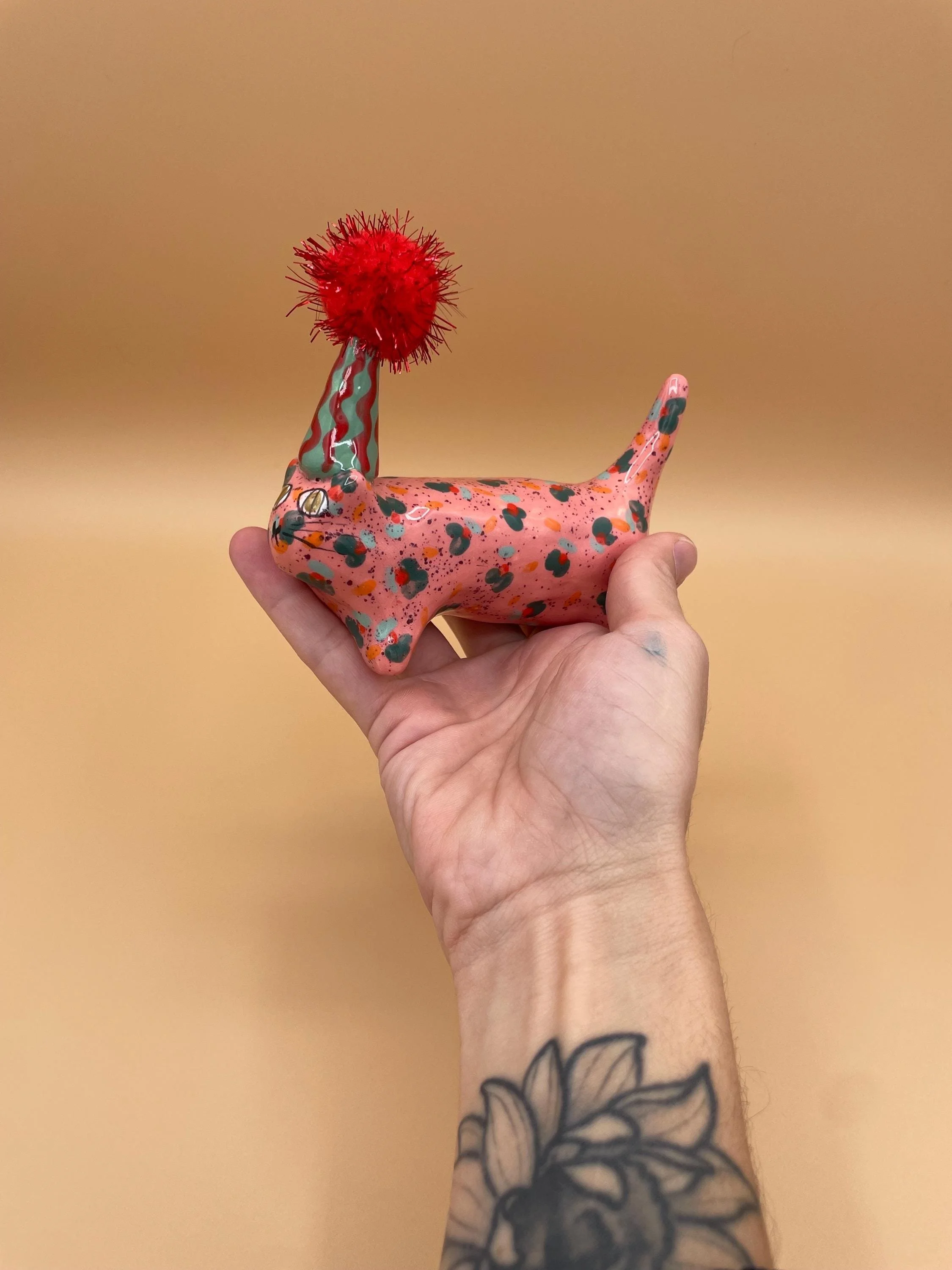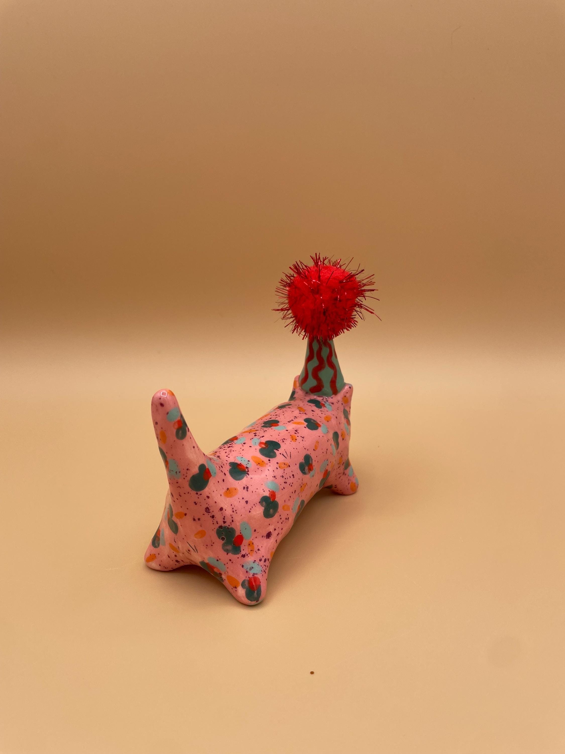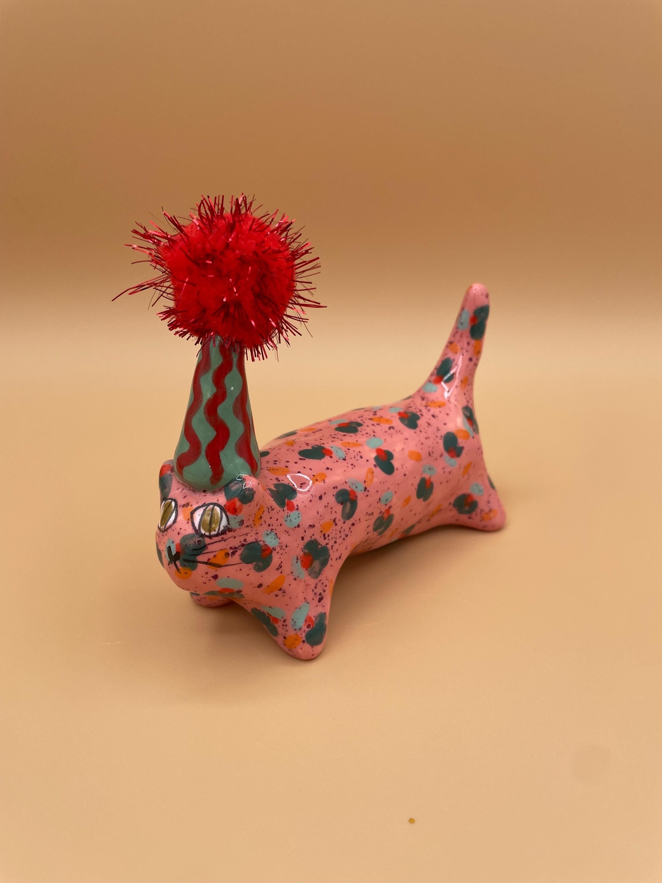 XL Party Cat with Speckled Pink Body and pompom Party Hat
