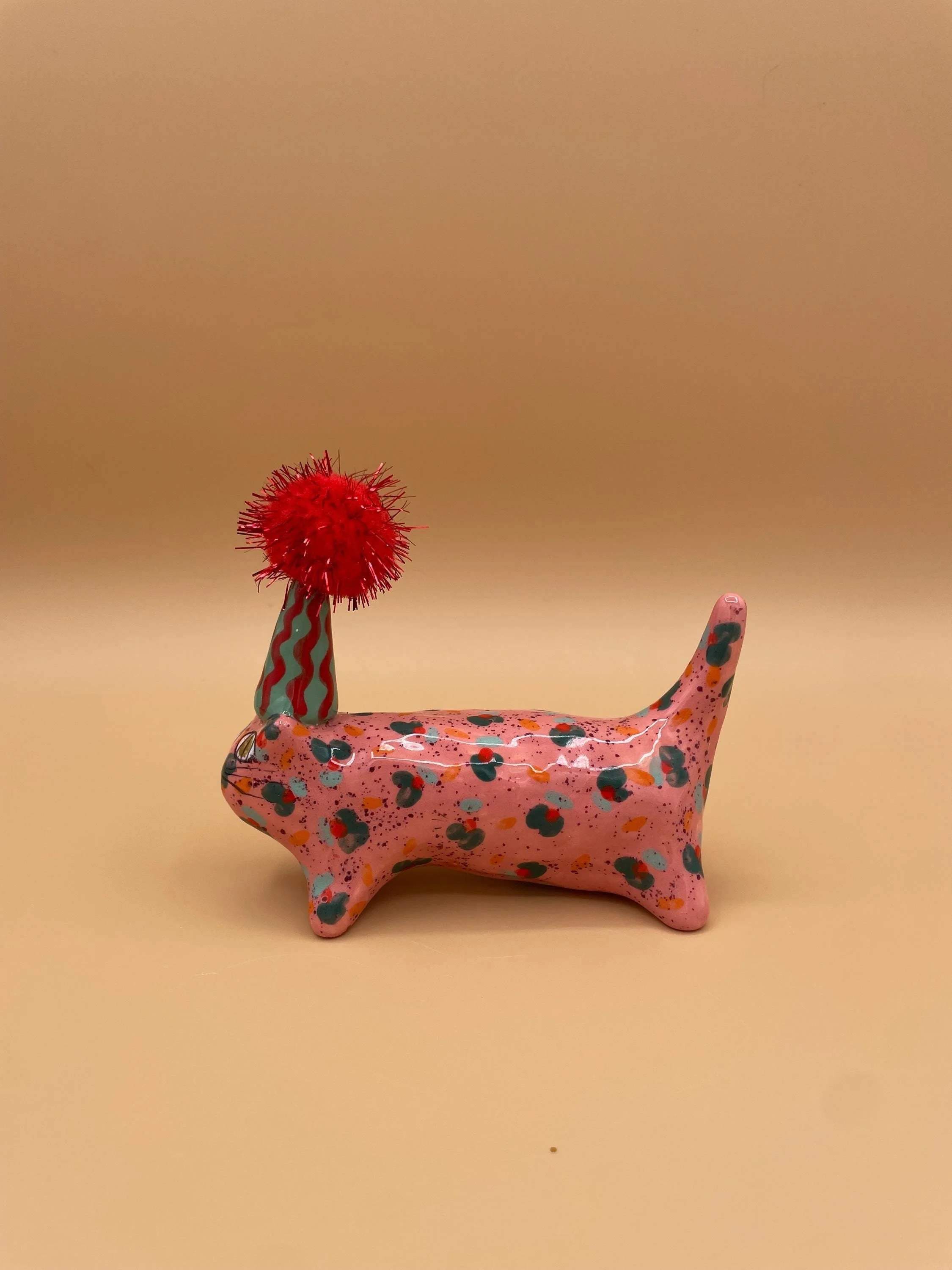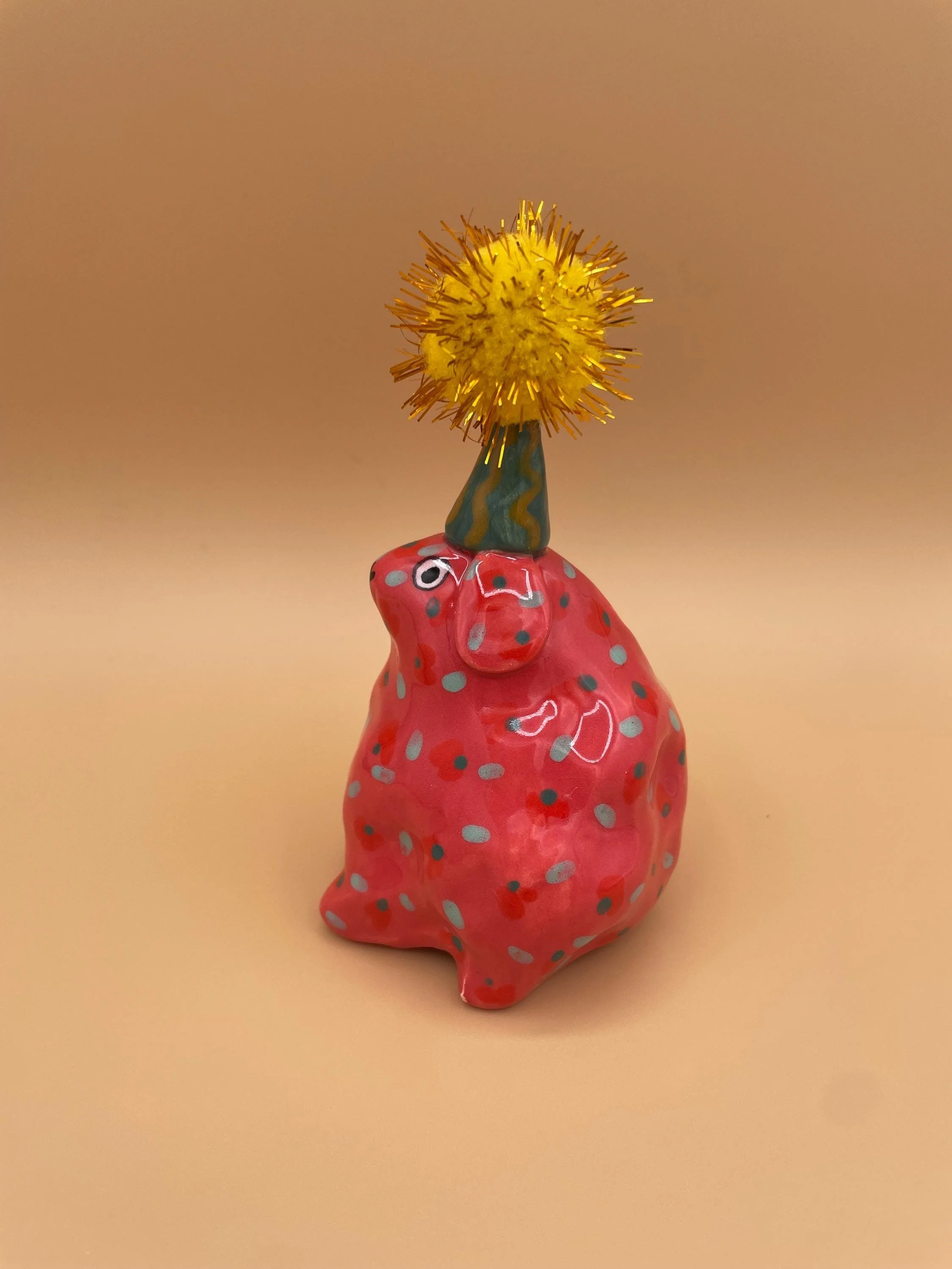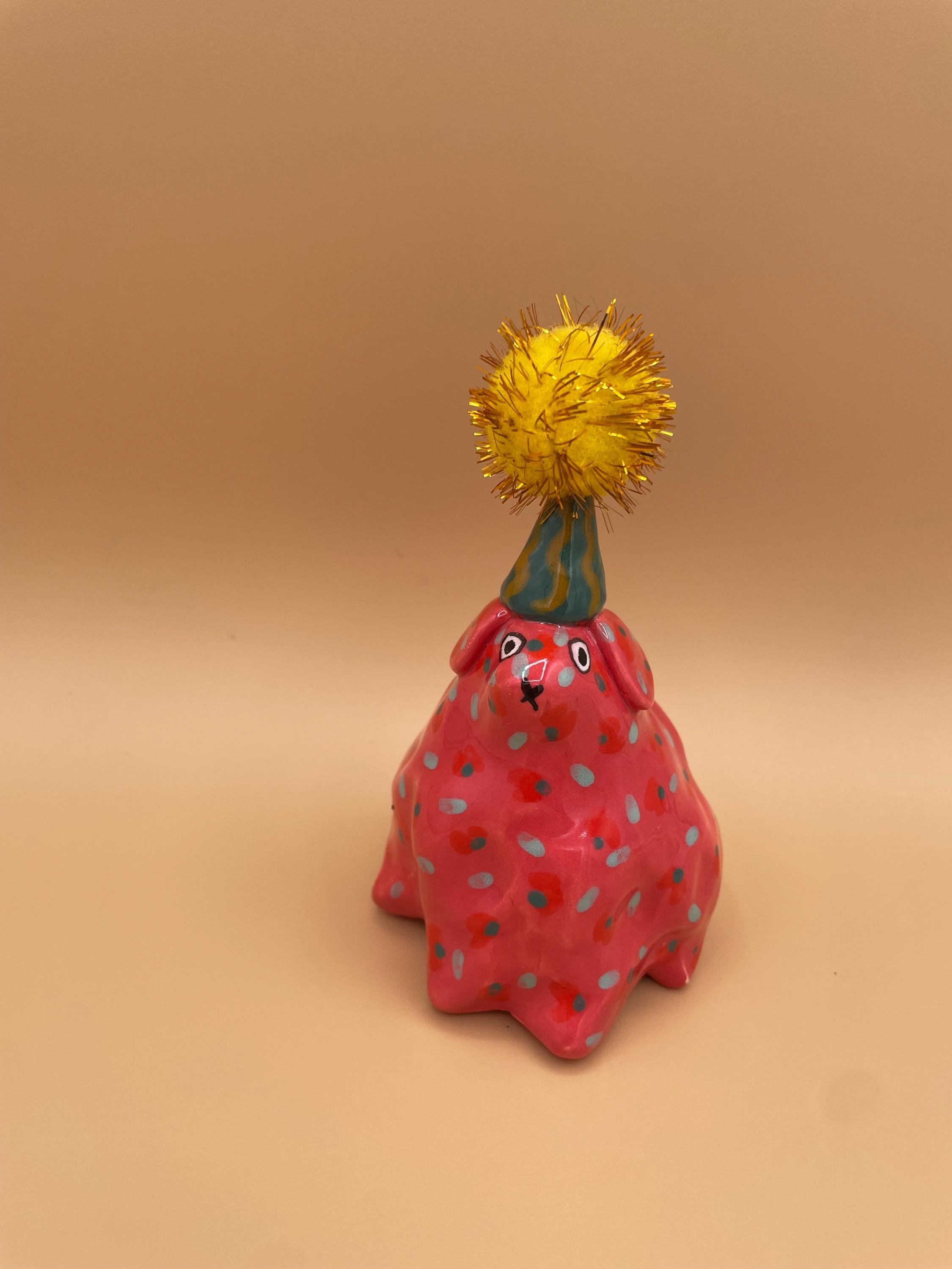 XL Party Cat with Speckled Pink Body and pompom Party Hat